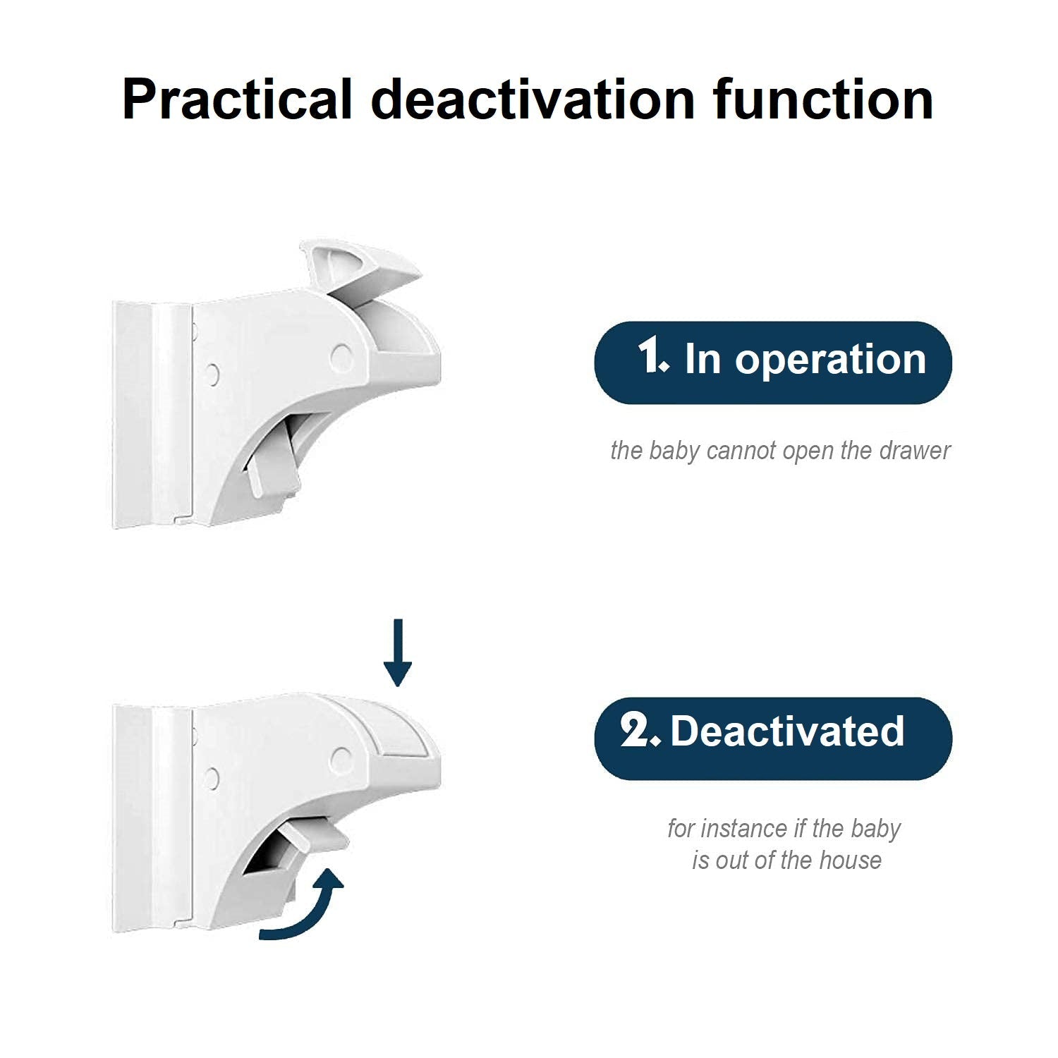 - Praktische Deaktivierungsfunktion: Bei Abwesenheit von Kindern kann die Sicherung unkompliziert deaktiviert werden.