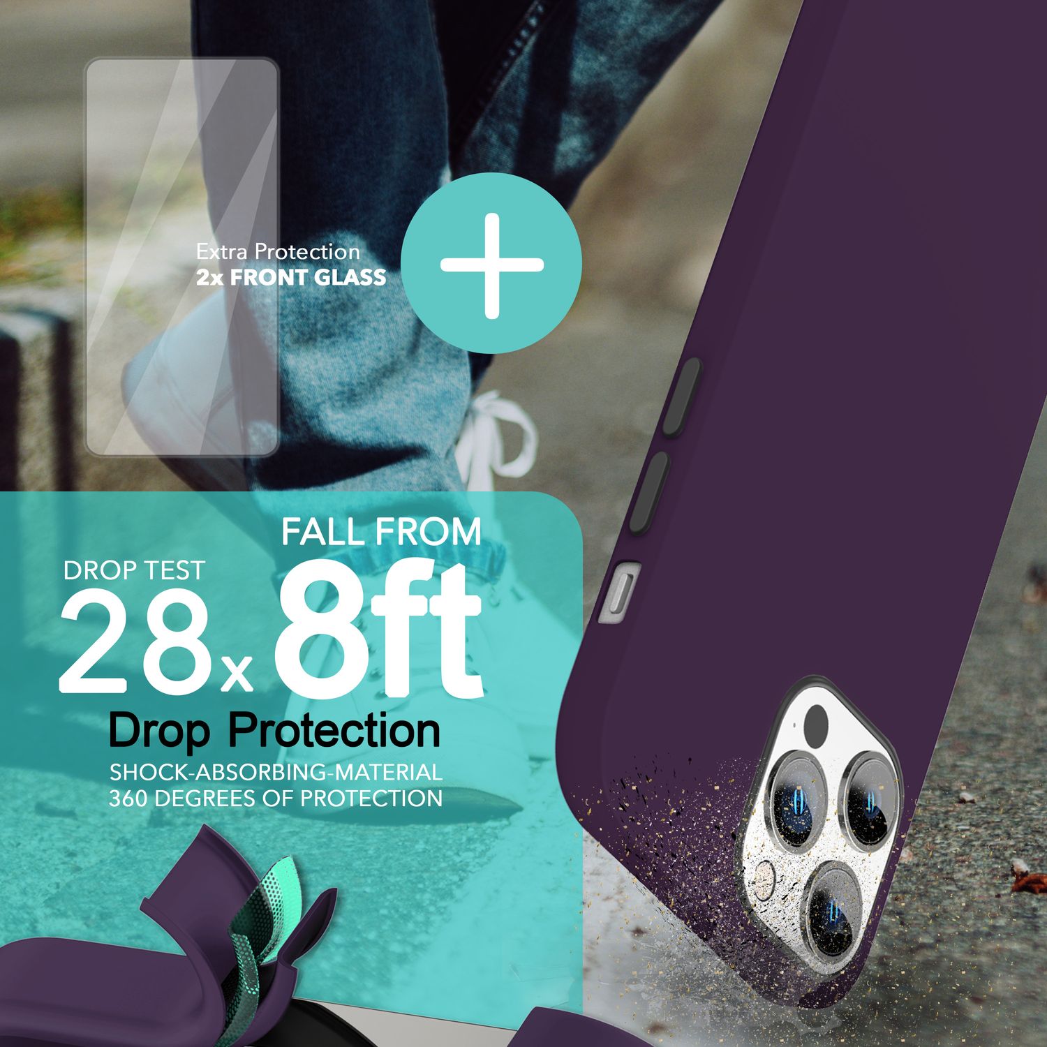 MagSafe Hülle mit 2x Schutz Glas für iPhone 14 Pro Max, Easy Clean Silikon Case