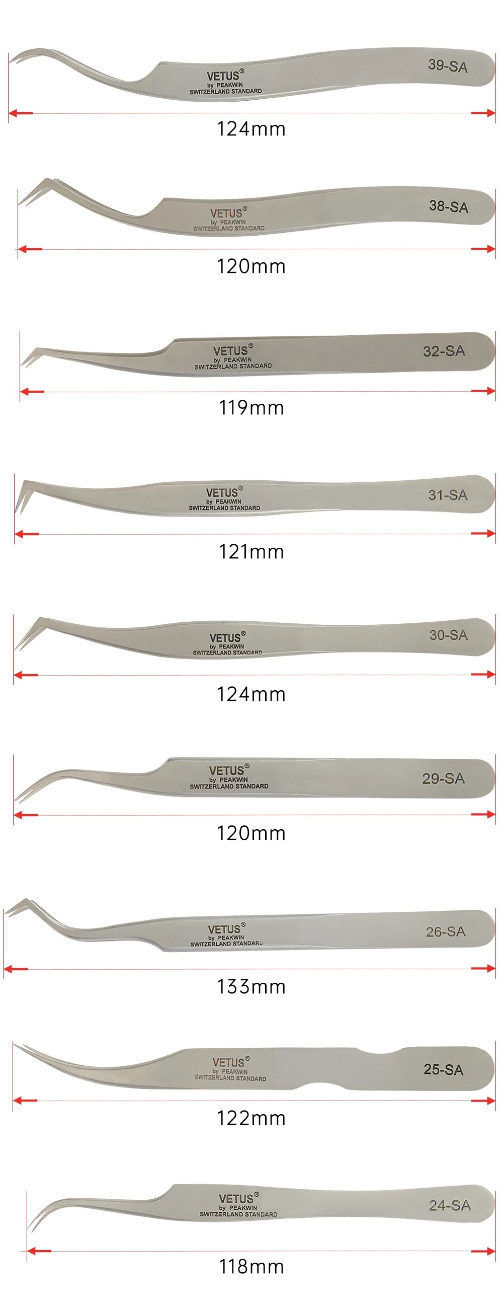 - Serien: 3D-Serie (3D Tweezer), CS-Serie (CS-5A, CS-11, CS-12, CS-15), ESD-Serie (ESD-11, ESD-12, ESD-14, ESD-15, ESD-16, ESD-17)