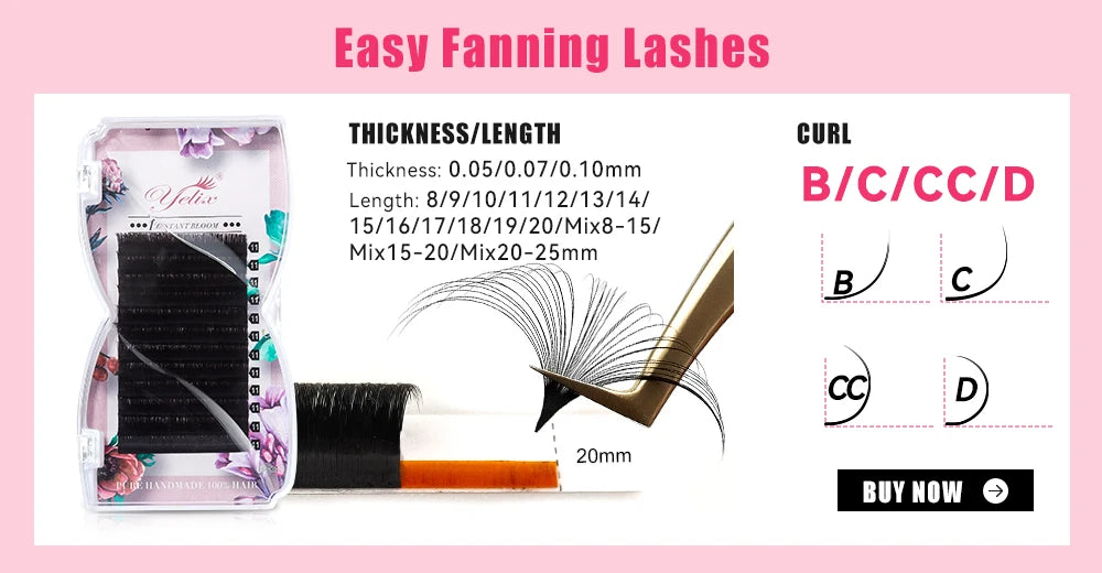 - Geeignet für verschiedene Techniken: 3D-Volumen, Fächer-Erstellung, Einzelwimpern sowie präzise Augenbrauenkorrekturen.
