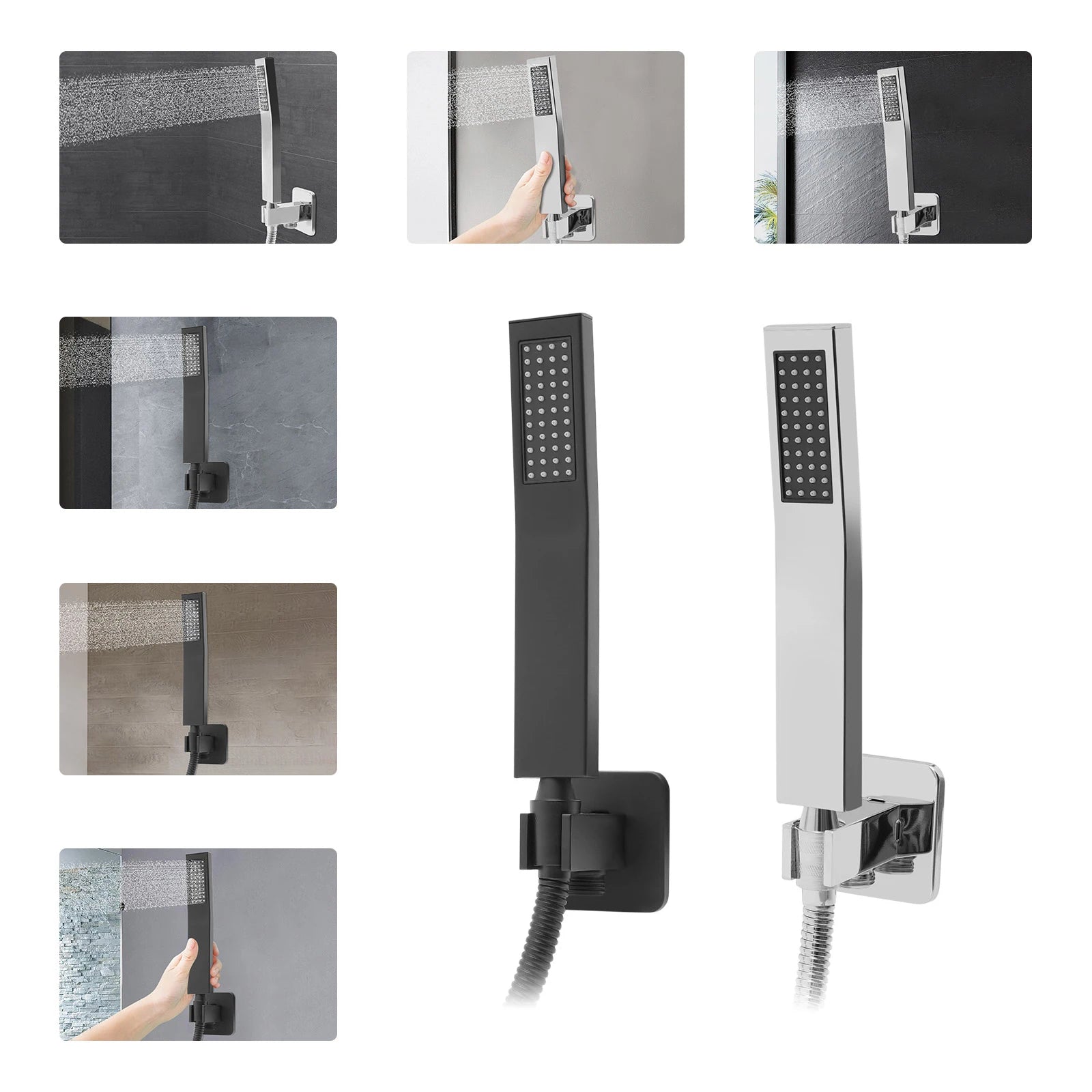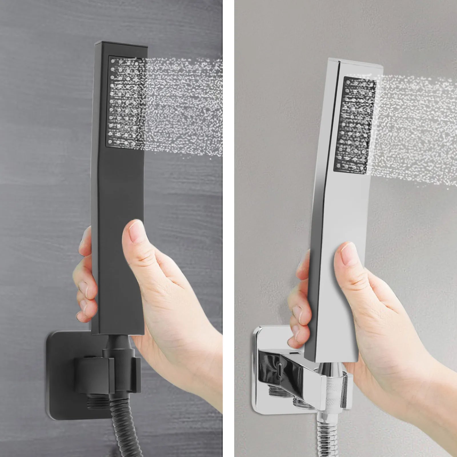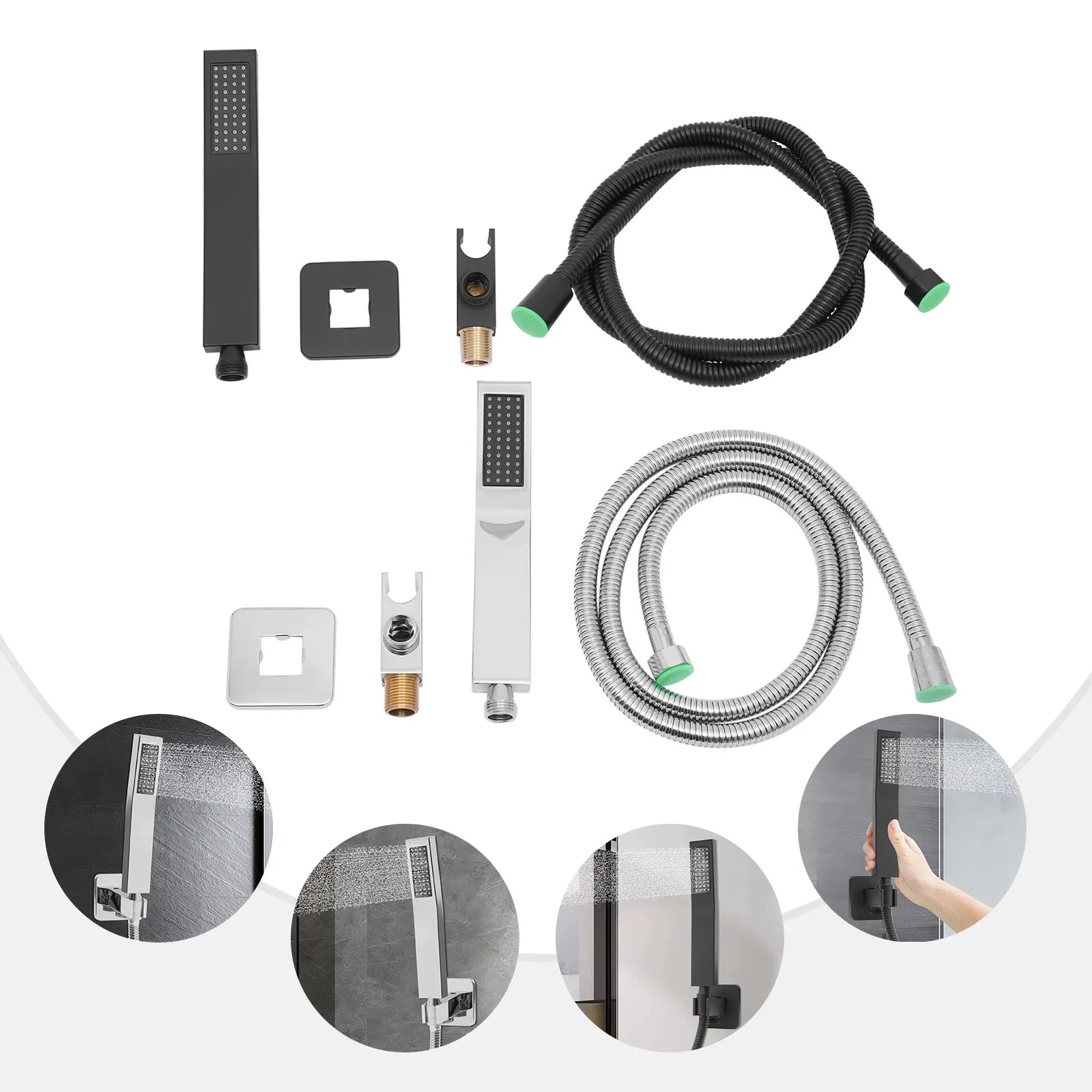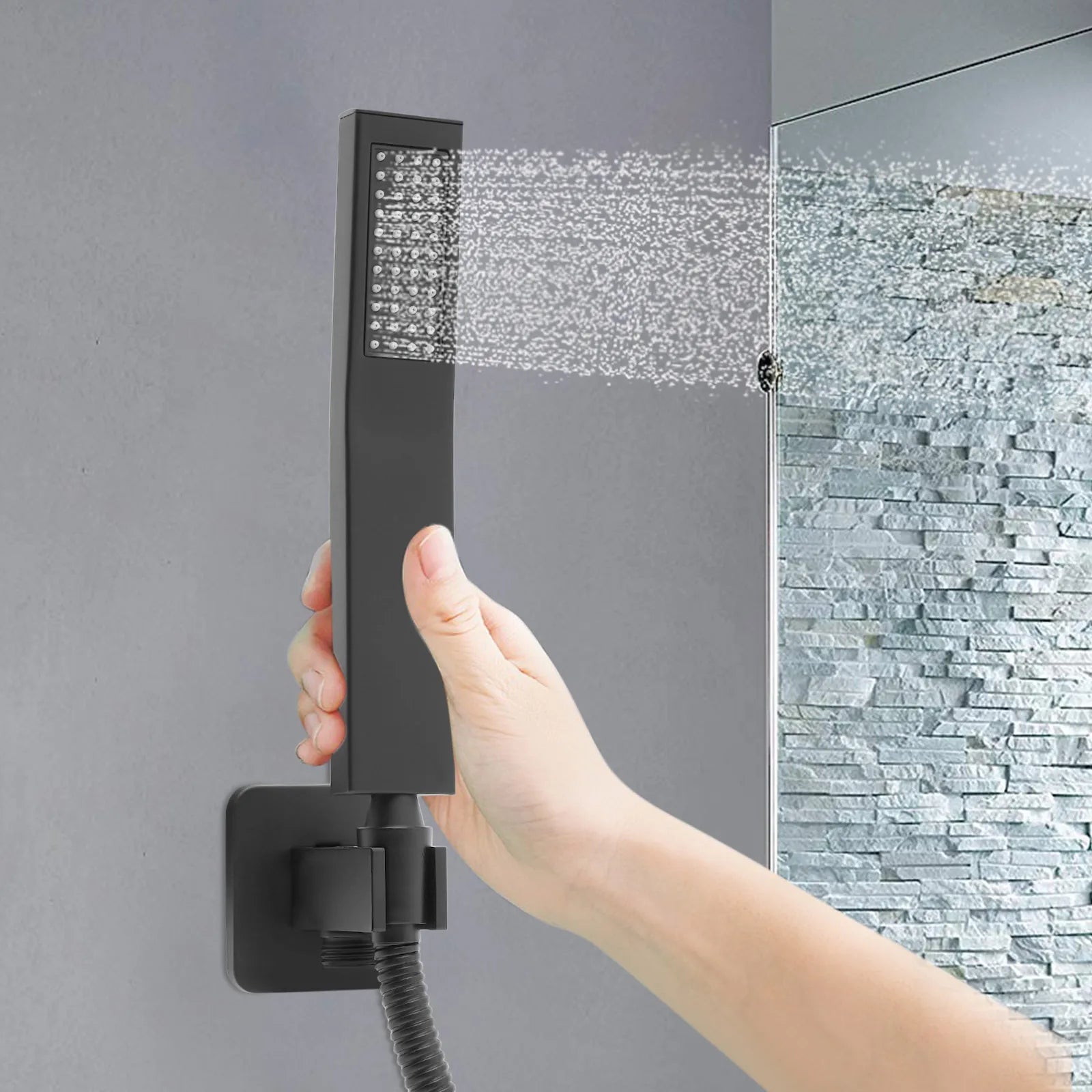 Mattschwarzes, geräuscharmes Duscharmaturen-Set mit Messing-Wandanschluss und Federschlauch