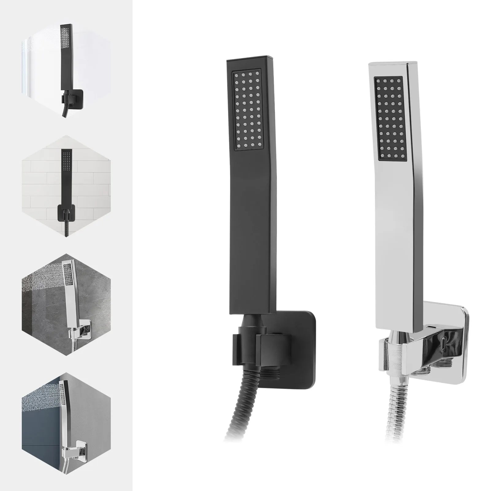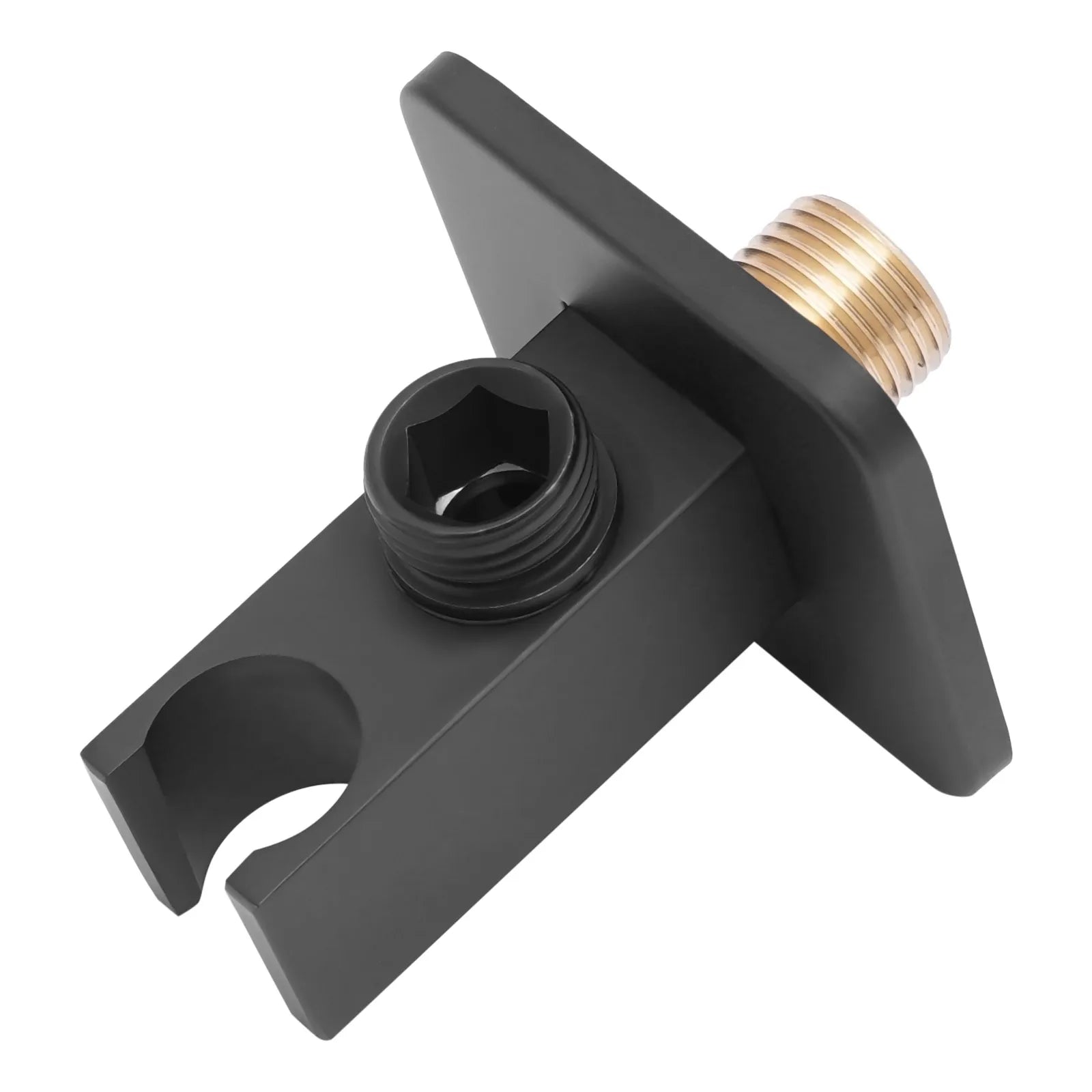 Mattschwarzes, stummes Duscharmaturen-Set mit Messing-Wandanschlusshalter und Federschlauch. Es eignet sich für Badezimmer, Duschen und Badewannen.