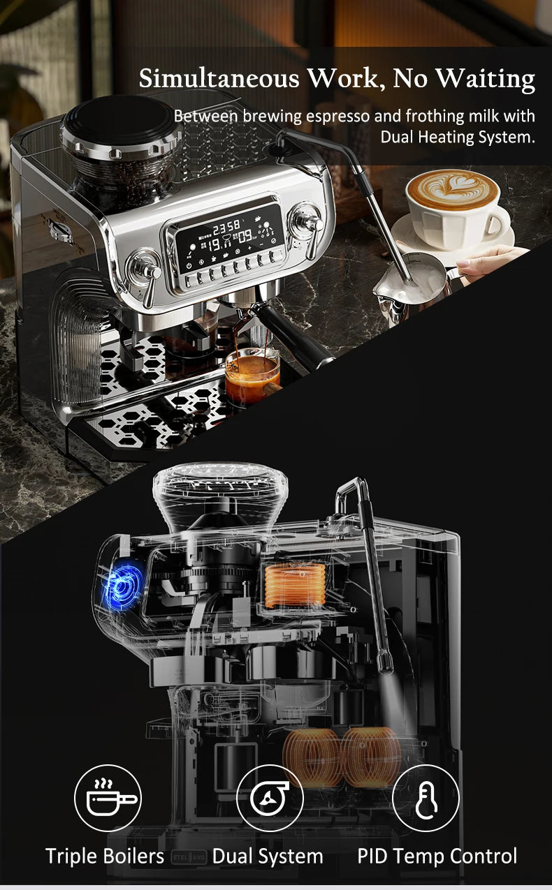 McIlpoog TC530 Semi-Automatic Kaffeemaschine mit integriertem Mahlwerk – Perfekter Kaffeegenuss für Zuhause und Büro