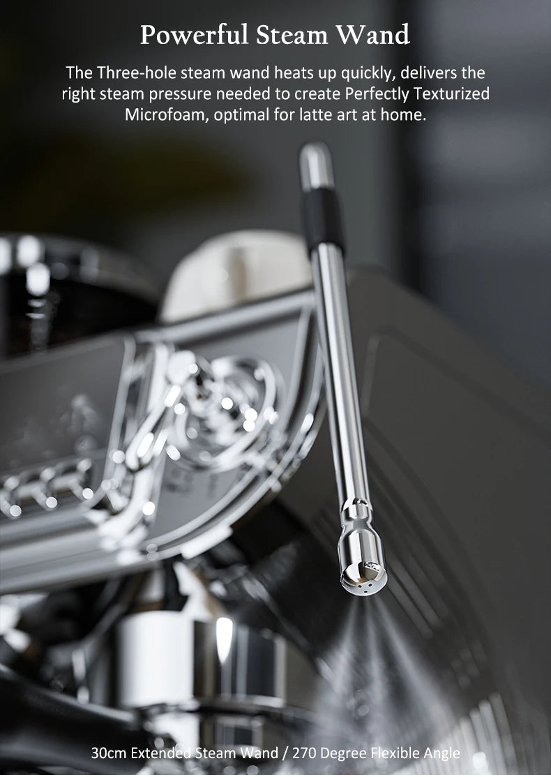 - Leistungsstarker Dampferzeuger ermöglicht cremigen Milchschaum für Latte und Cappuccino.