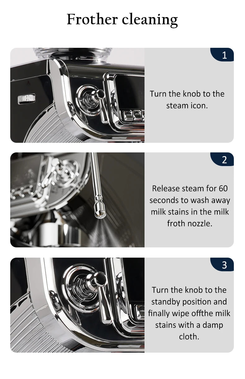- Praktische Dampfauslass-Regelung für präzise Ergebnisse und wiederholbare Qualität.