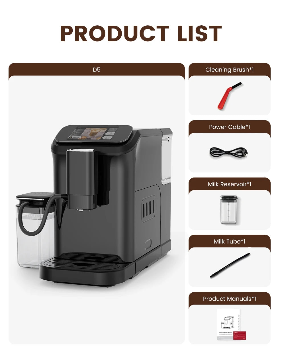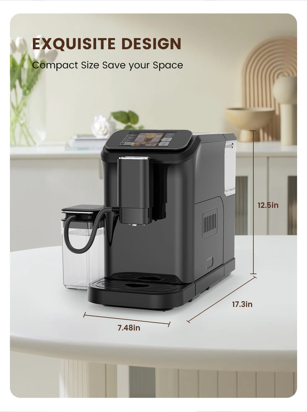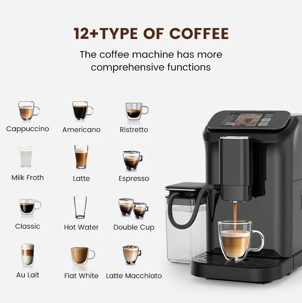 Mcilpoog WS-D5 Automatic Coffee Machine - Smart Wi-Fi , 12 Coffee Varieties, Touchscreen & Built-In Frother/1.5L Tank for Home