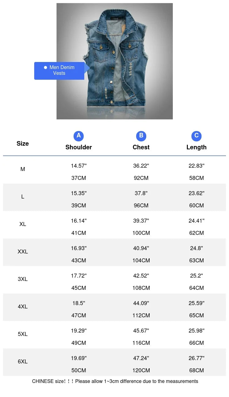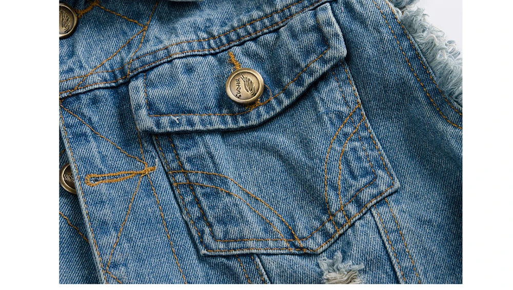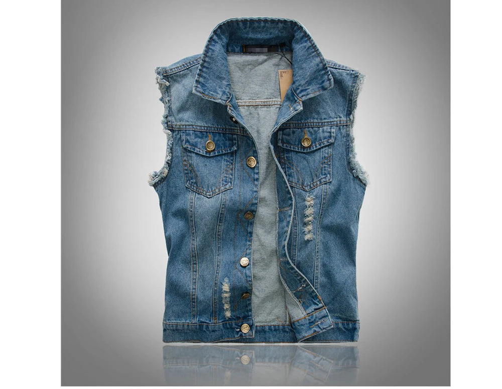 Men's Denim Vest Sleeveless Jackets Cotton Retro Streetwear Ripped Blue Jean Vests Fashion Hip Hop Waistcoat Men Clothing