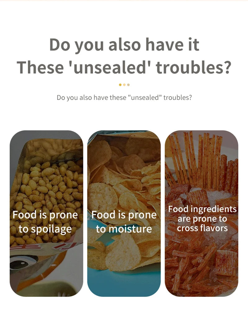 - Geeignet für verschiedene Verpackungen: Funktioniert mit Snackbeuteln, Gewürzbeuteln, Teebeuteln und anderen Folienverpackungen.