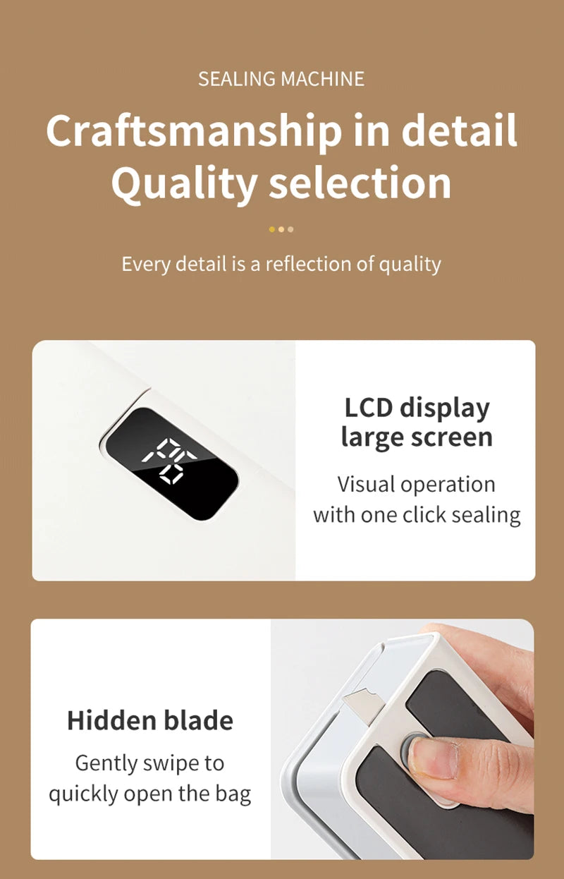 - Kein spezielles Zubehör nötig: Funktioniert mit handelsüblichen PE/PP-Beuteln mit glatten Kanten, dadurch schnelle Integration in den Alltag.