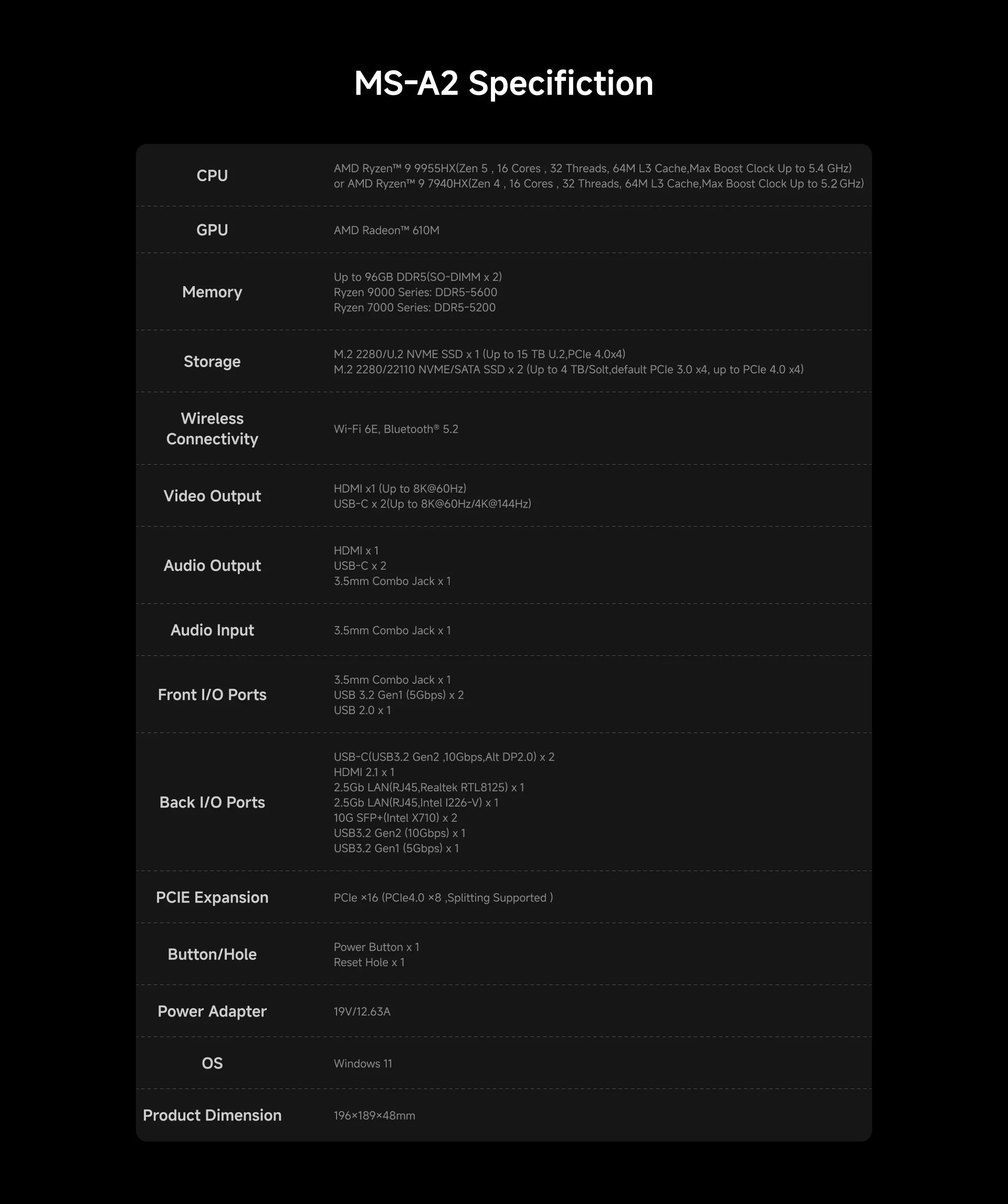 Der MINISFORUM MS-A2 bietet beeindruckende Multithreading-Leistung, schnelle Speicheroptionen und vielseitige Konnektivität in einem platzsparenden Mini-Desktop – ideal für anspruchsvolle Arbeitsplätze, Kreativstudios und Serveranwendungen.
