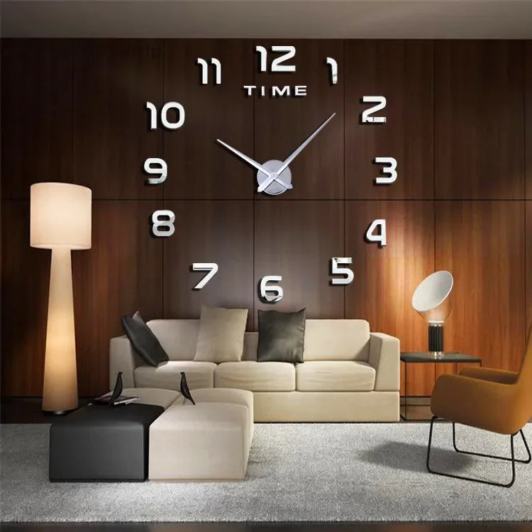 Modern Design Large Wall Clock 2D DIY Quartz Clock Fashion Watch Acrylic Mirror Stickers Living Room Home Decoration Decor