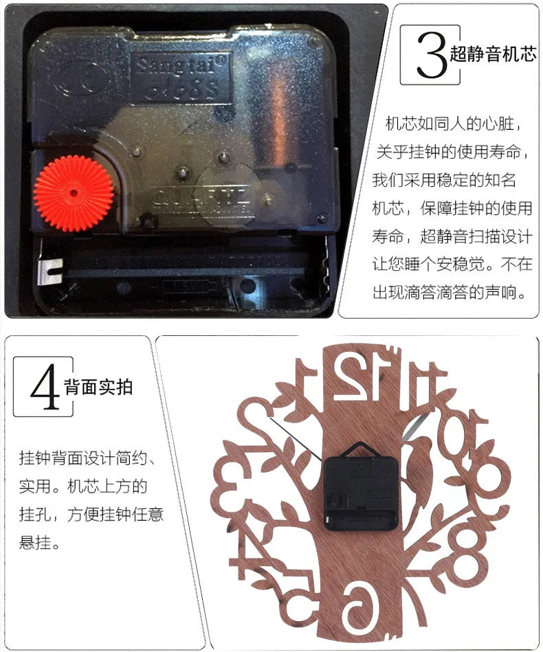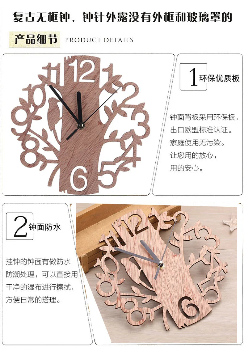 Modern Design Nordic Wall Clock Creative Hollow Design Wooden Birds Wall Clocks Silent Quartz Needle for Living Room Decorations