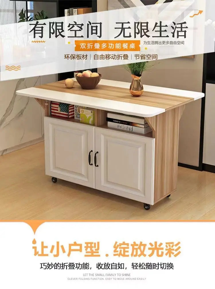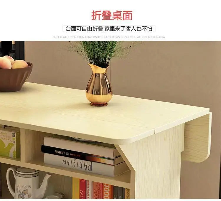 Modern Klappbar Esstisch Mit Aufbewahrung Regale Beweglich Küche Insel Schrank Massivholz Spanplatte Für Kleine Räume