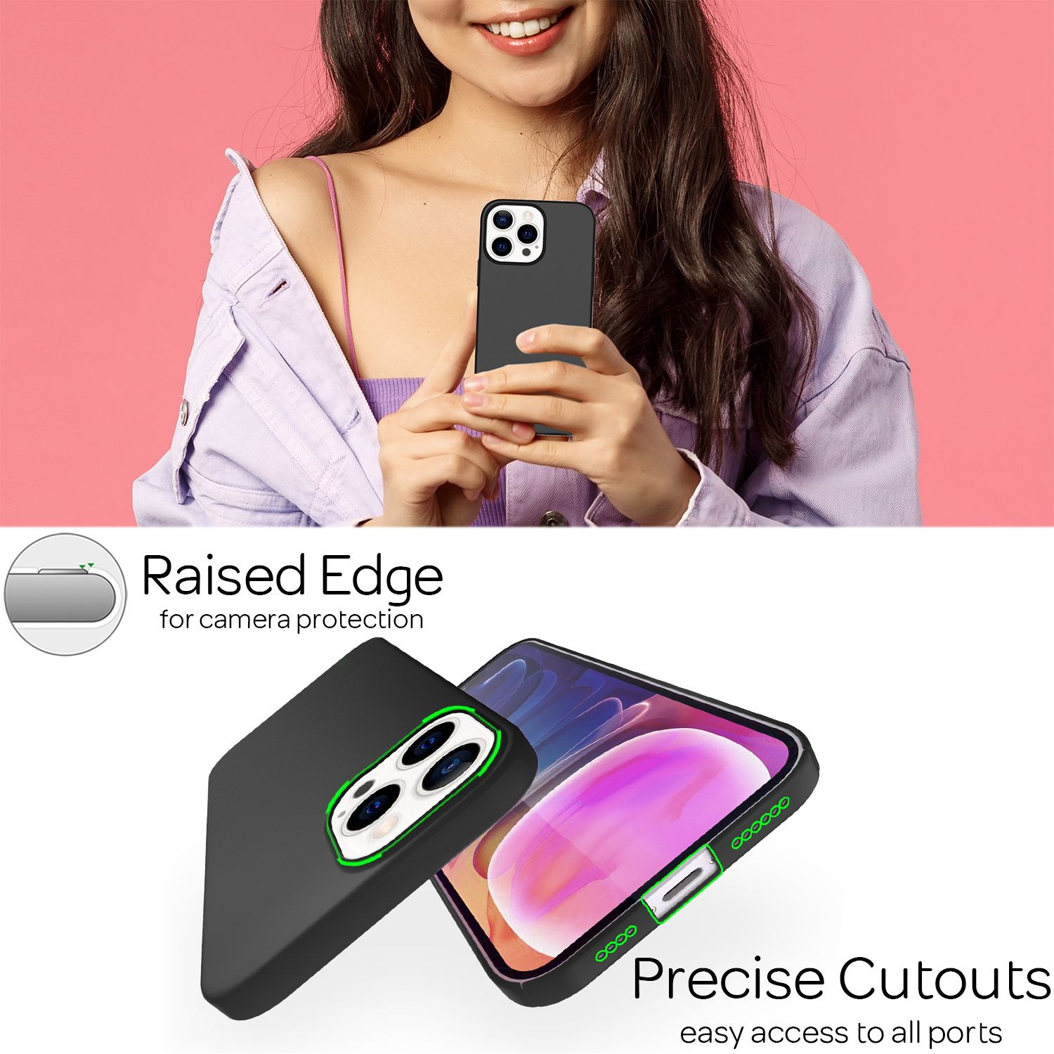 - Schutz der Kamera: Erhöhter Rand an der Kamerafläche vermindert direkten Kontakt mit Oberflächen und reduziert Kratzrisiken.