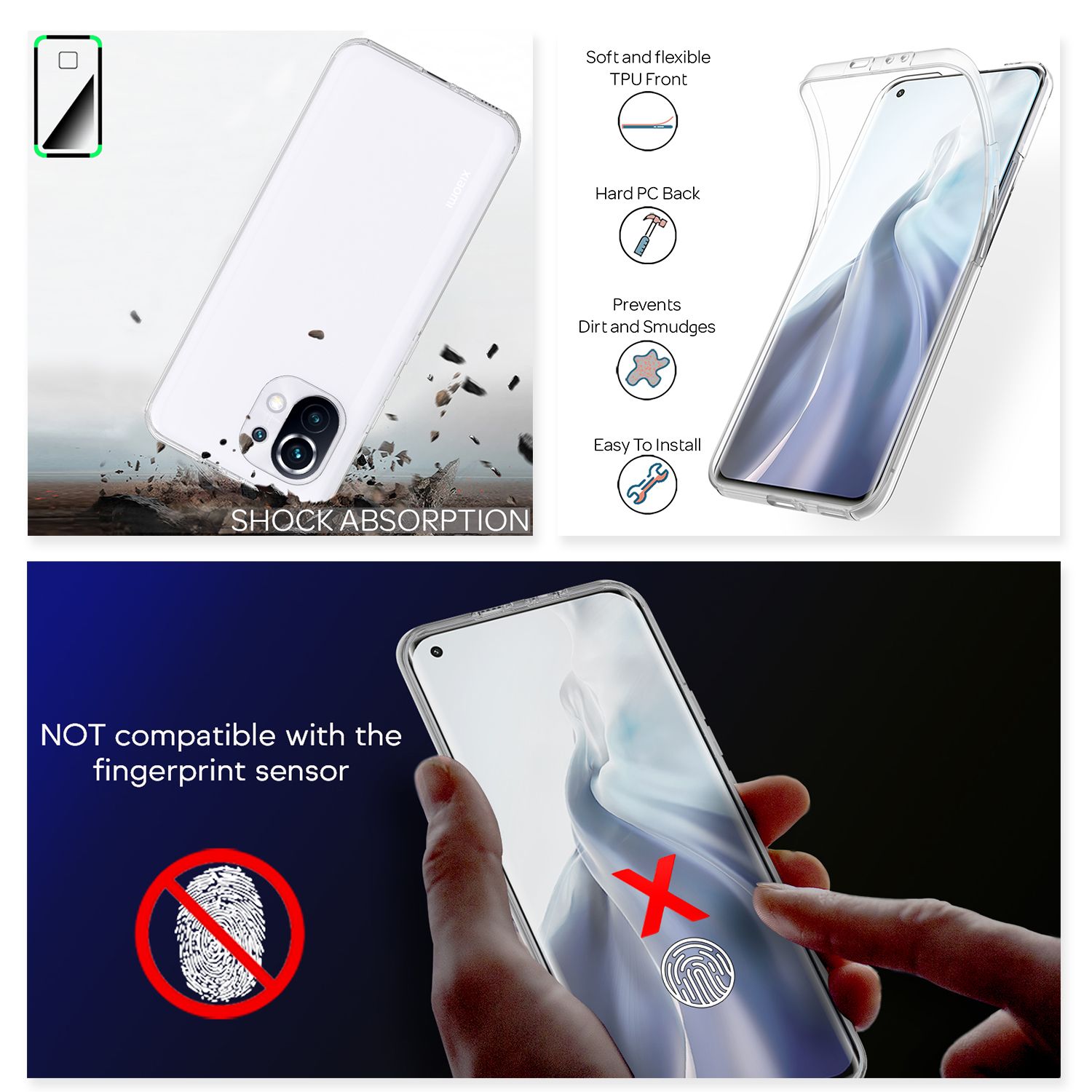 NALIA 360 Grad Handy Hülle für Xiaomi Mi 11 5G, Transparent Case vorne hinten