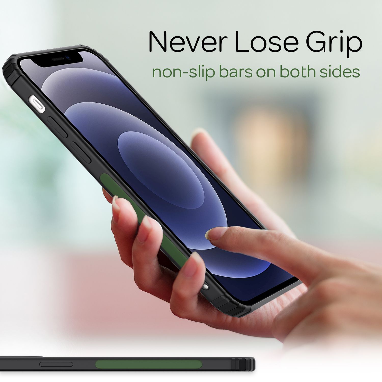 - Rutschfeste Seitenbalken sorgen für einen sicheren Griff, reduzieren das Abrutschen und erhöhen die Handhabungssicherheit beim Telefonieren oder Fotografieren.