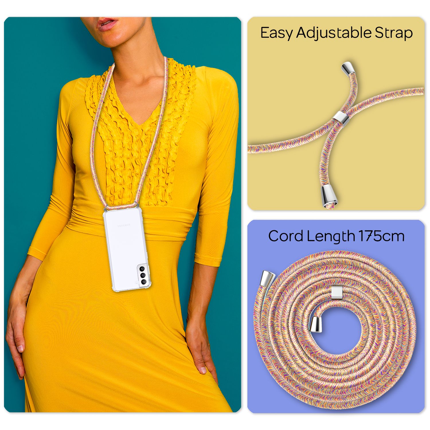 - 150 cm langes, leichtes Handyband ermöglicht mehrere Tragevarianten – über der Schulter, um den Hals oder als Crossbody.