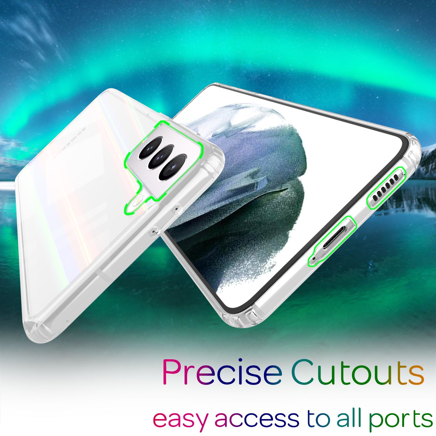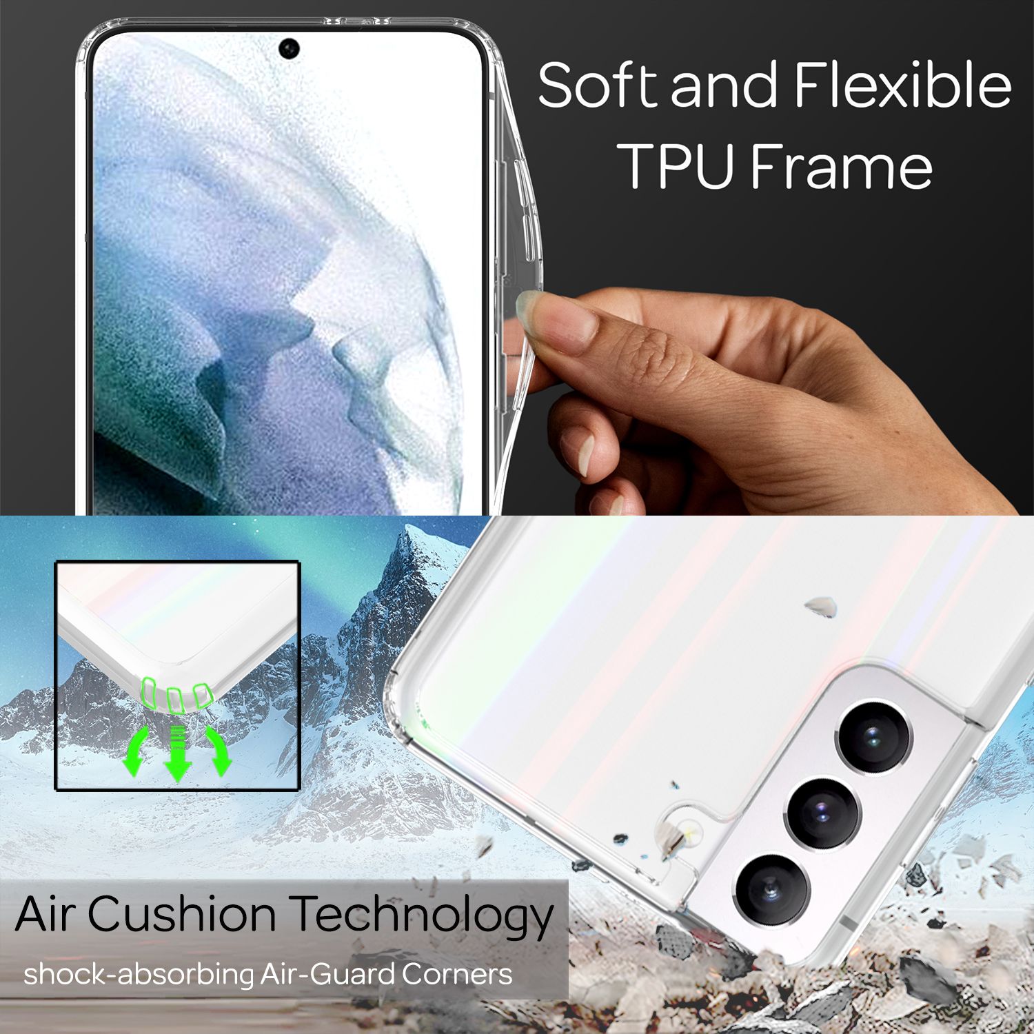 NALIA Hartglas Case für Samsung Galaxy S21, Transparent Regenbogen Case Cover