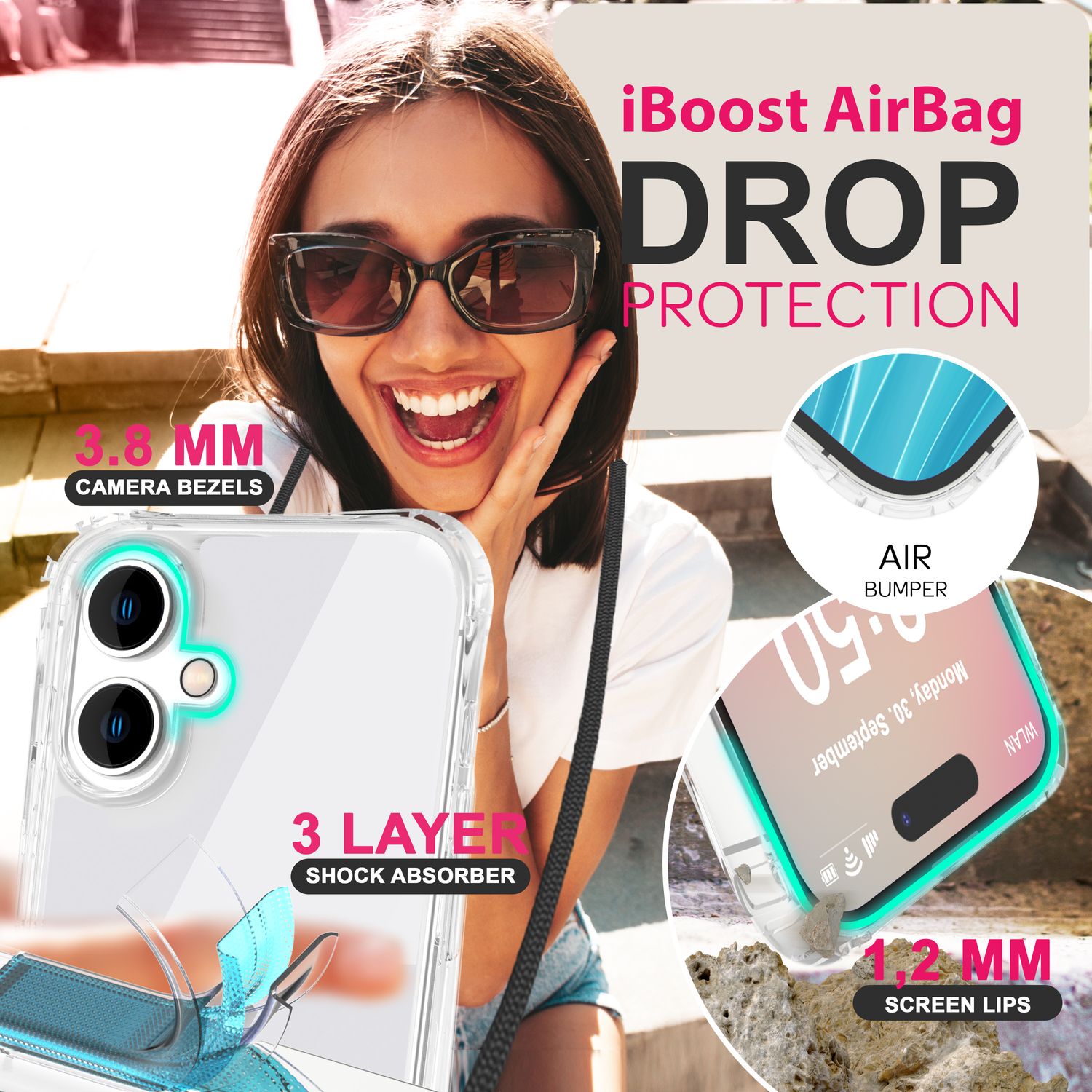 NALIA Hangit Klare Hülle - Passend Für IPhone 16 Plus, Transparent, Band Zum Umhängen