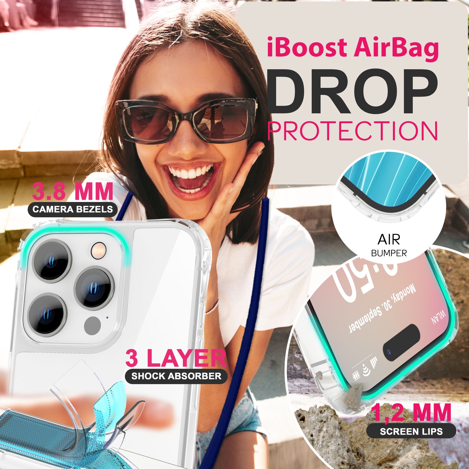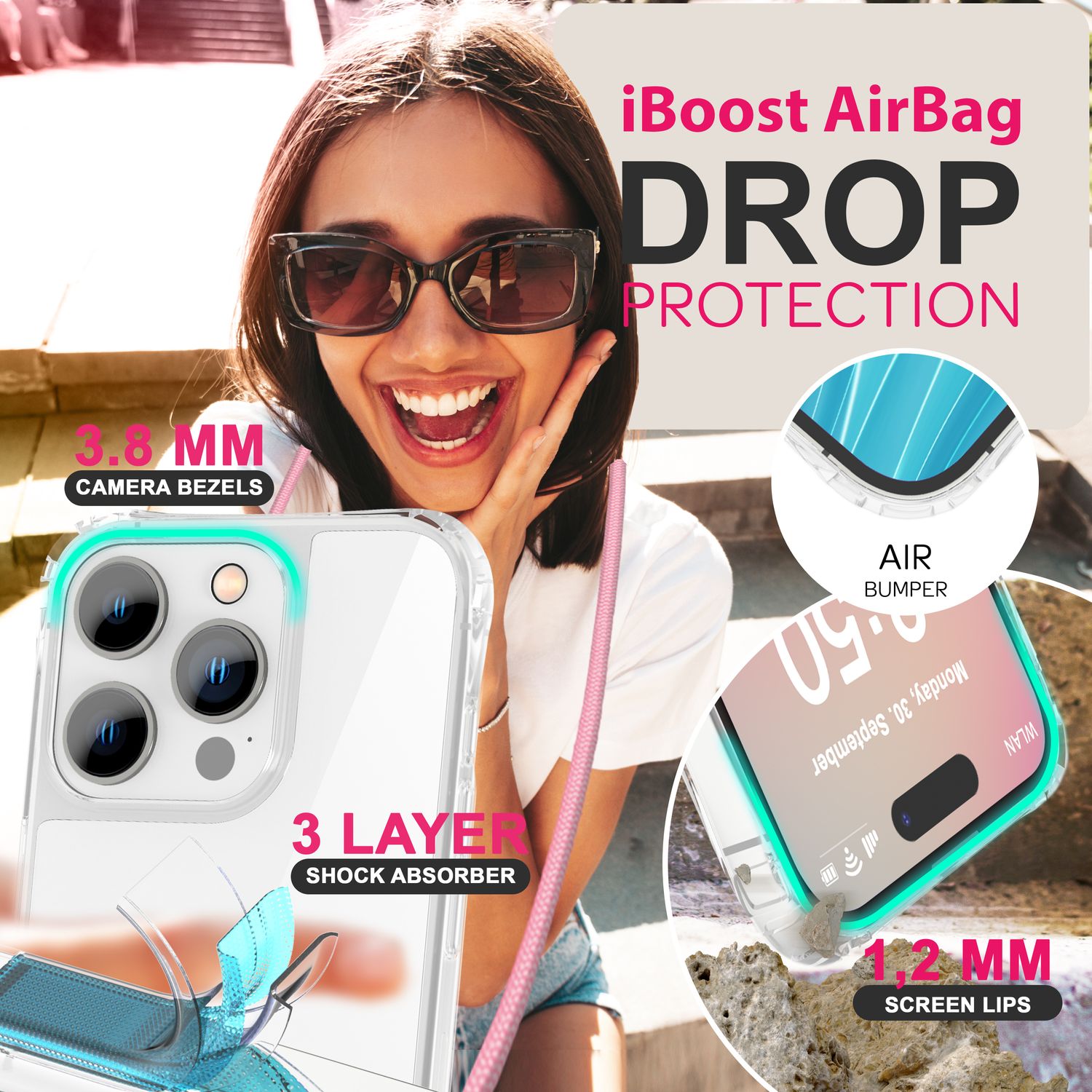 NALIA iPhone 16 Pro Klare Hülle Mit Band Umhänge