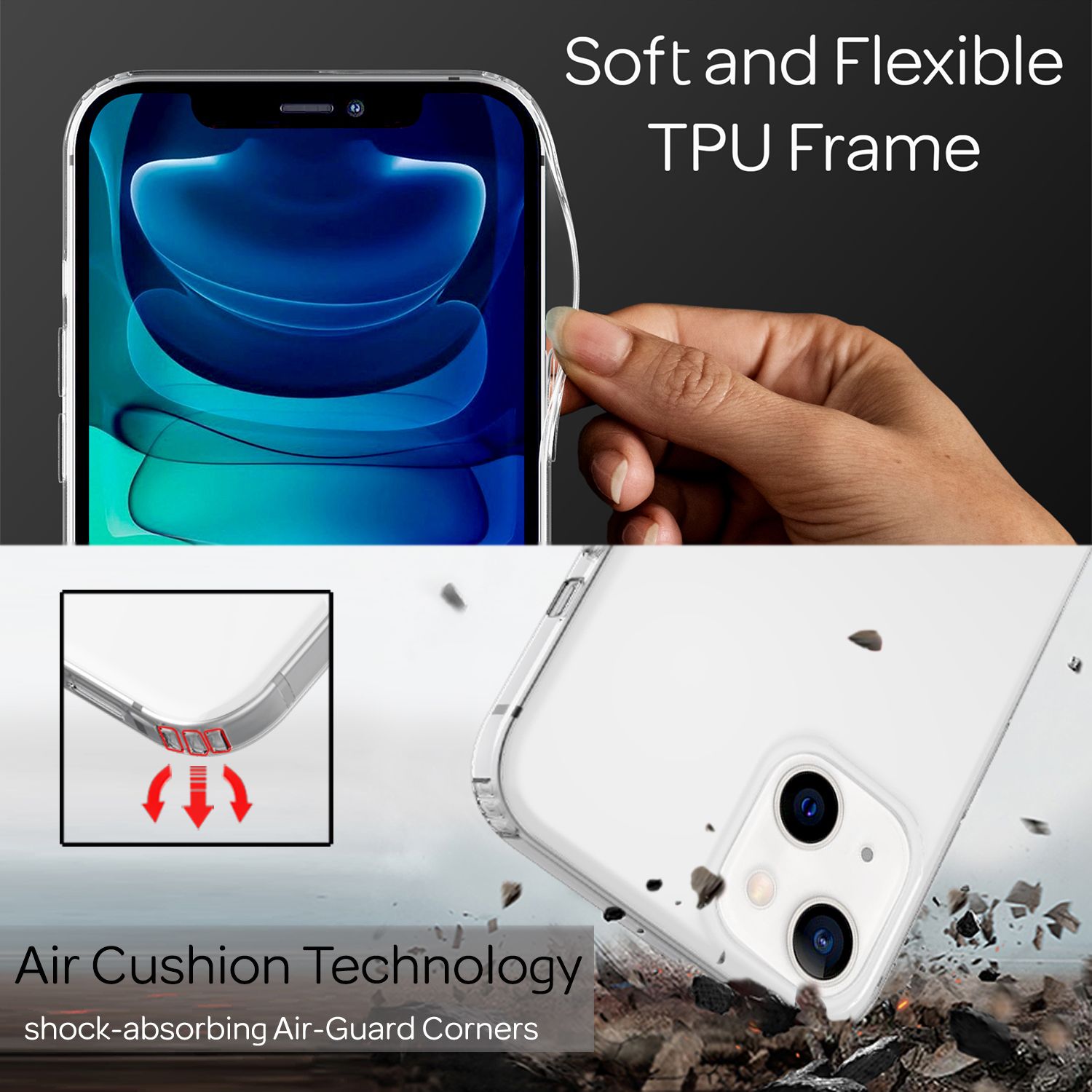 - Material Rahmen: Flexibles Silikon (TPU) für Stoßaufnahme