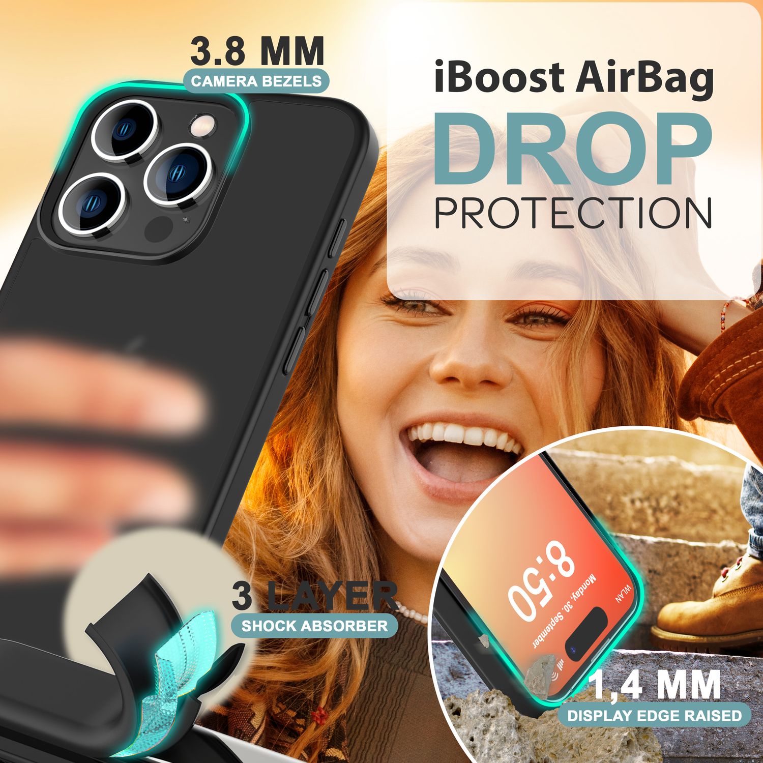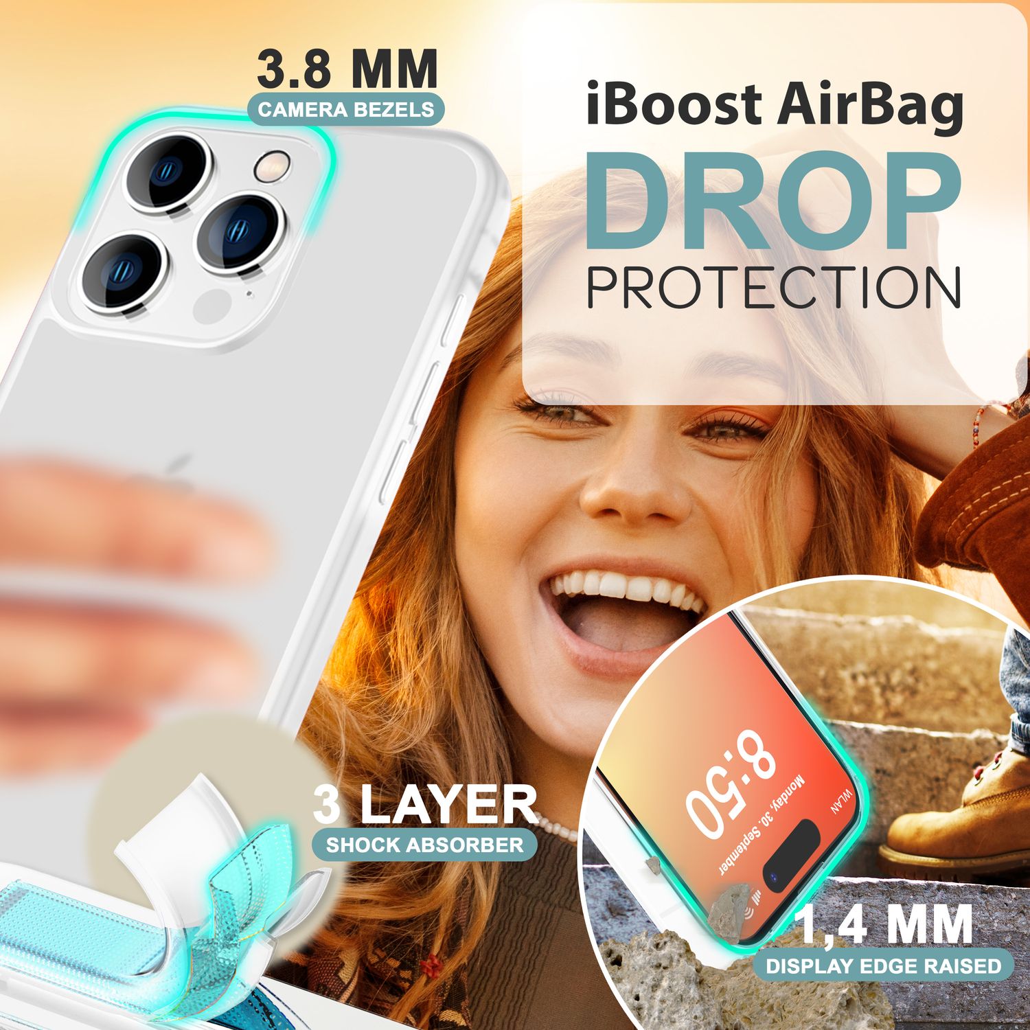 Die harte Rückseite aus Polycarbonat schützt vor Kratzern, Schmutz und Fingerabdrücken, während der flexible, verstärkte TPU-Rahmen mit stoßdämpfenden Ecken Stürze effektiv abfedert. Die erhöhte Umrandung bewahrt Kamera und Display vor Kratzern beim Ablegen auf Oberflächen.