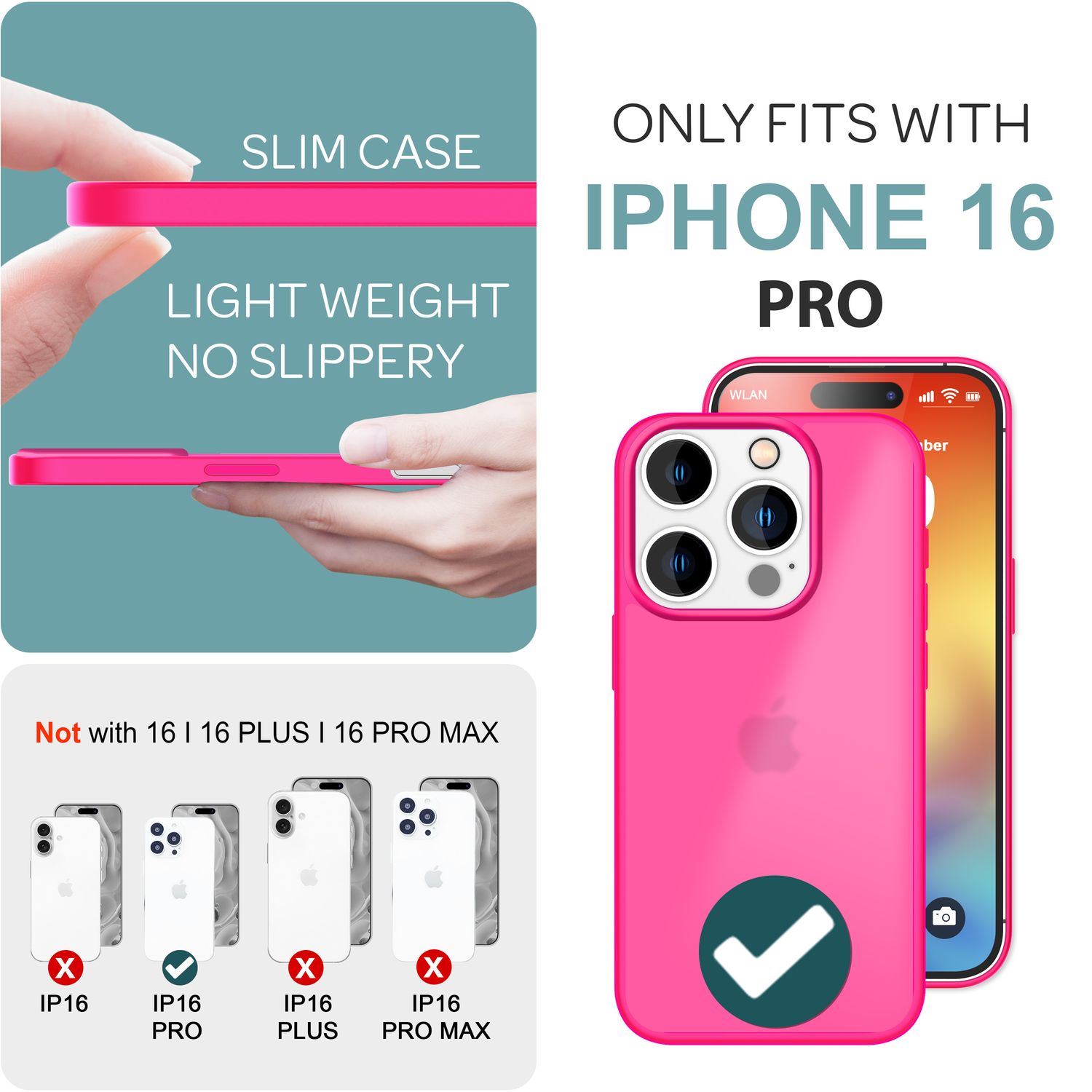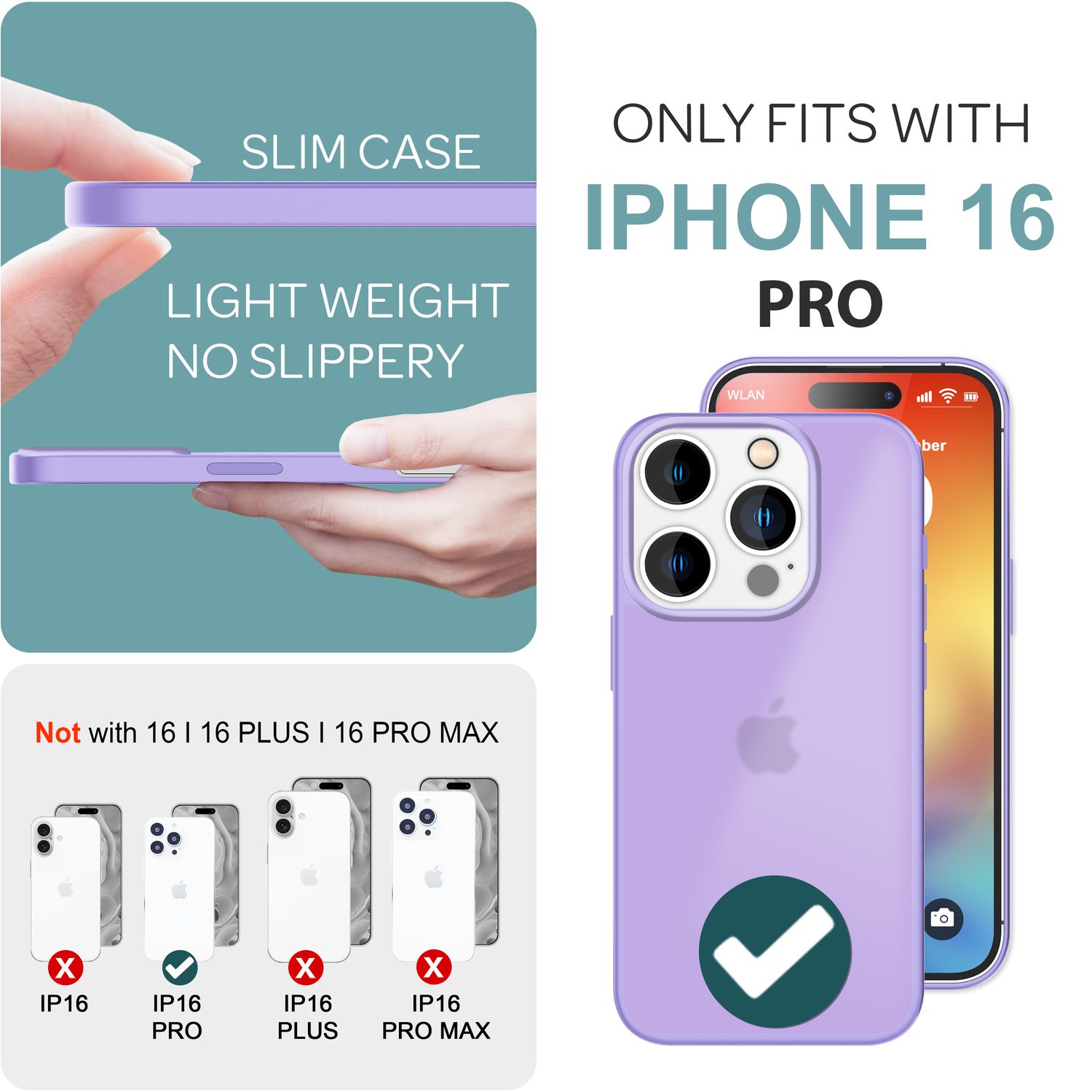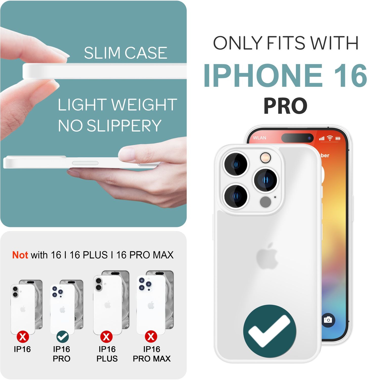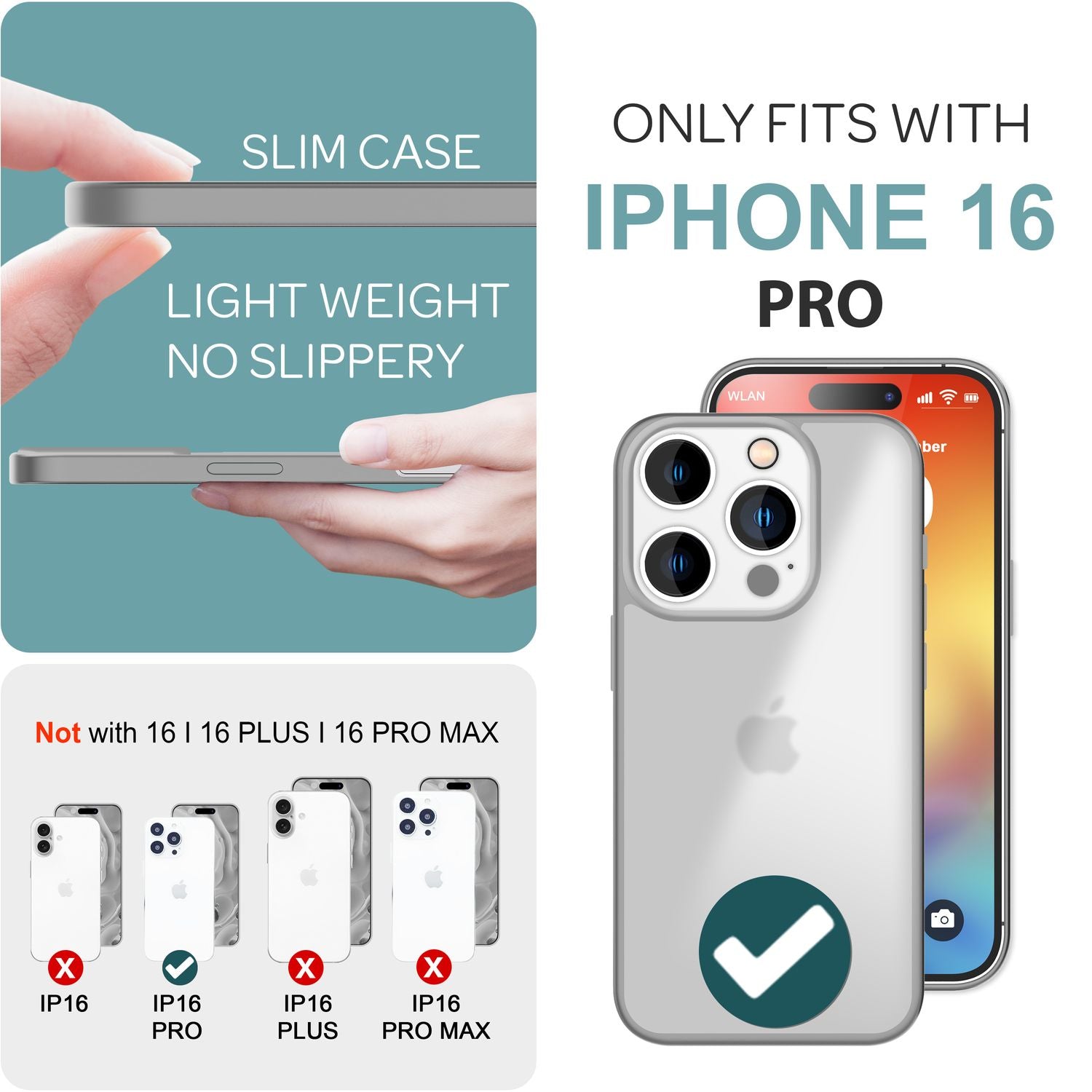 NALIA Matte Hybrid Hülle für iPhone 16 Pro, Anti-Fingerabdruck Acryl Rückseite & Silikon, Semi-Transparent