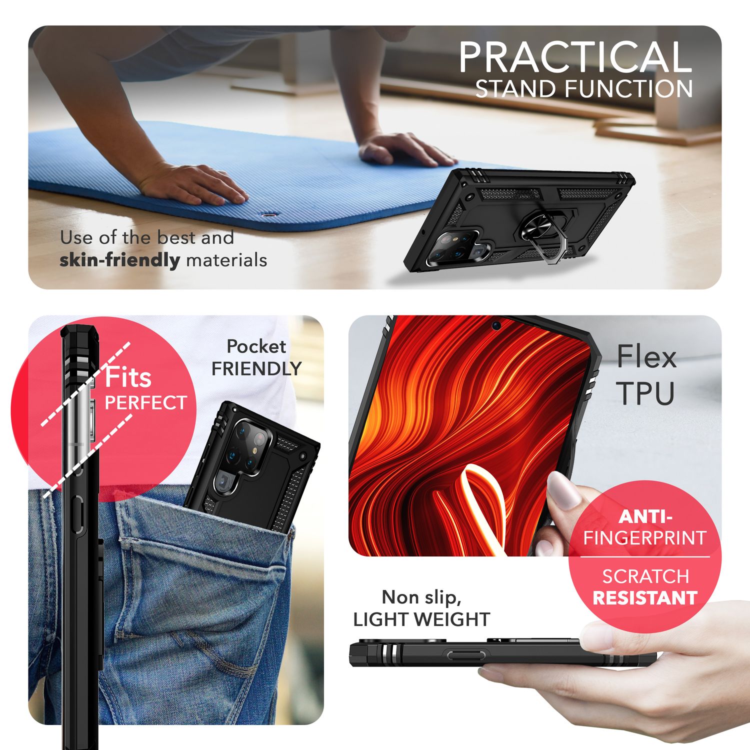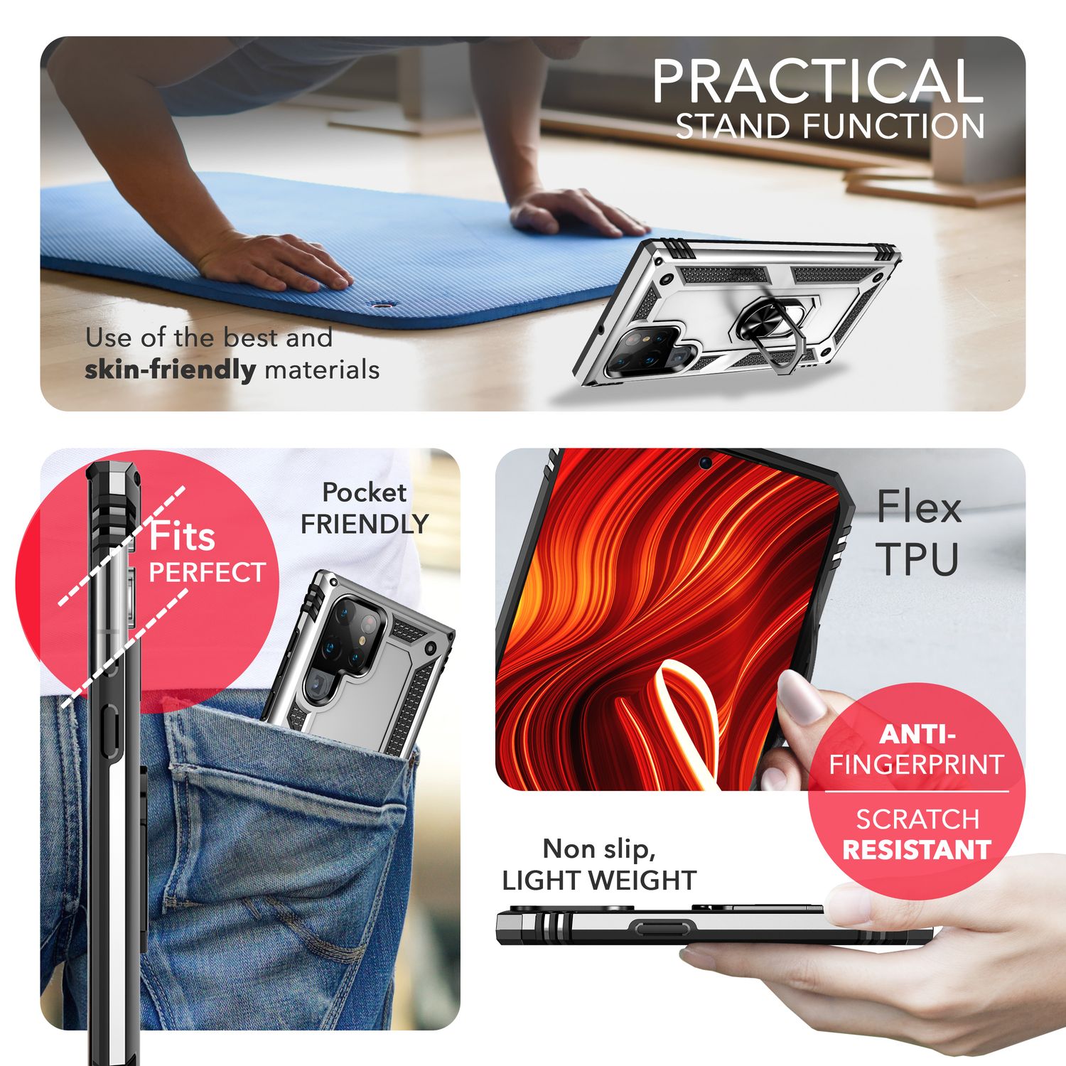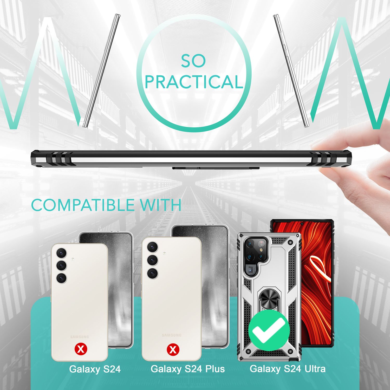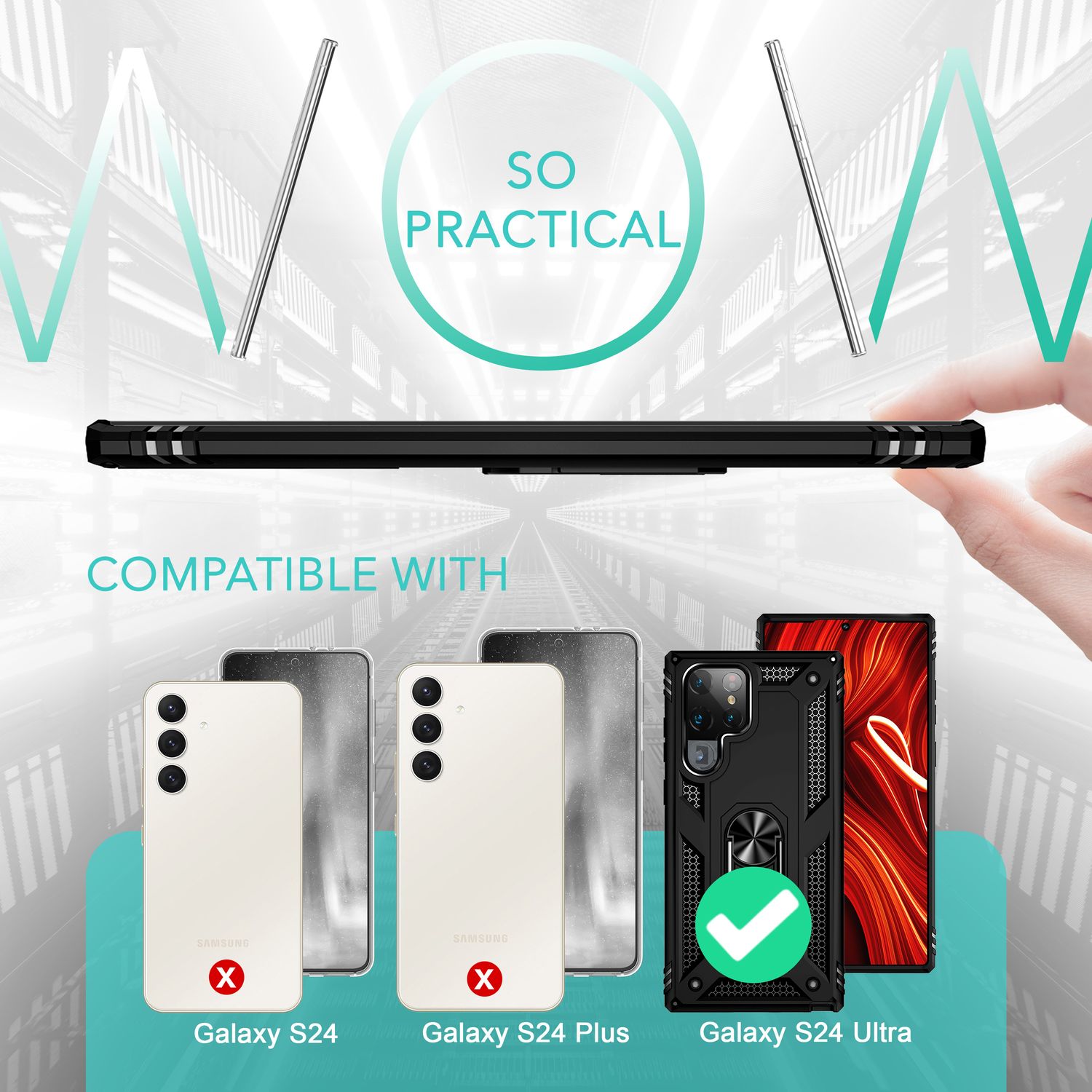 NALIA Military-Style Ringhülle Galaxy S24 Ultra Extrem Robuste Schockresistent - Passgenau, Leicht, Hybrid-Material