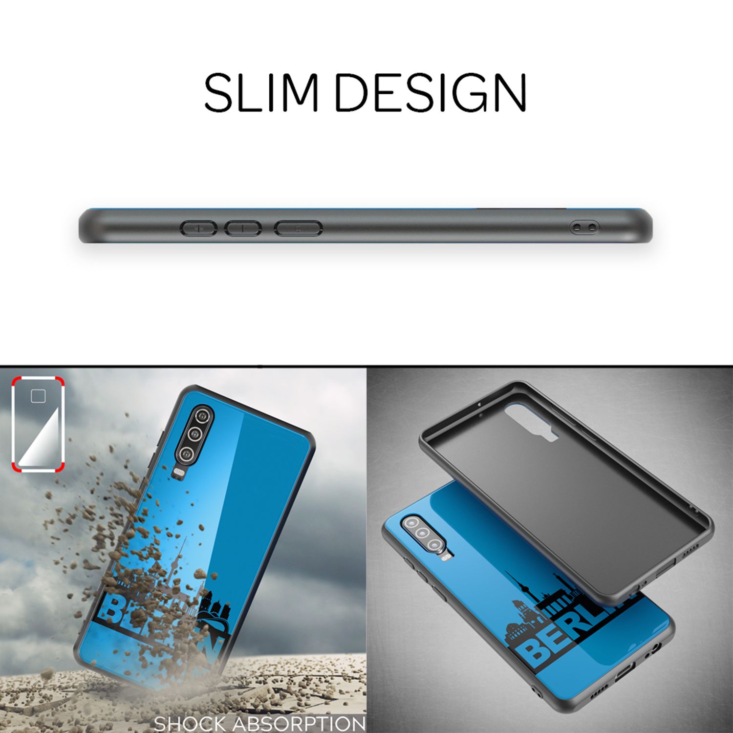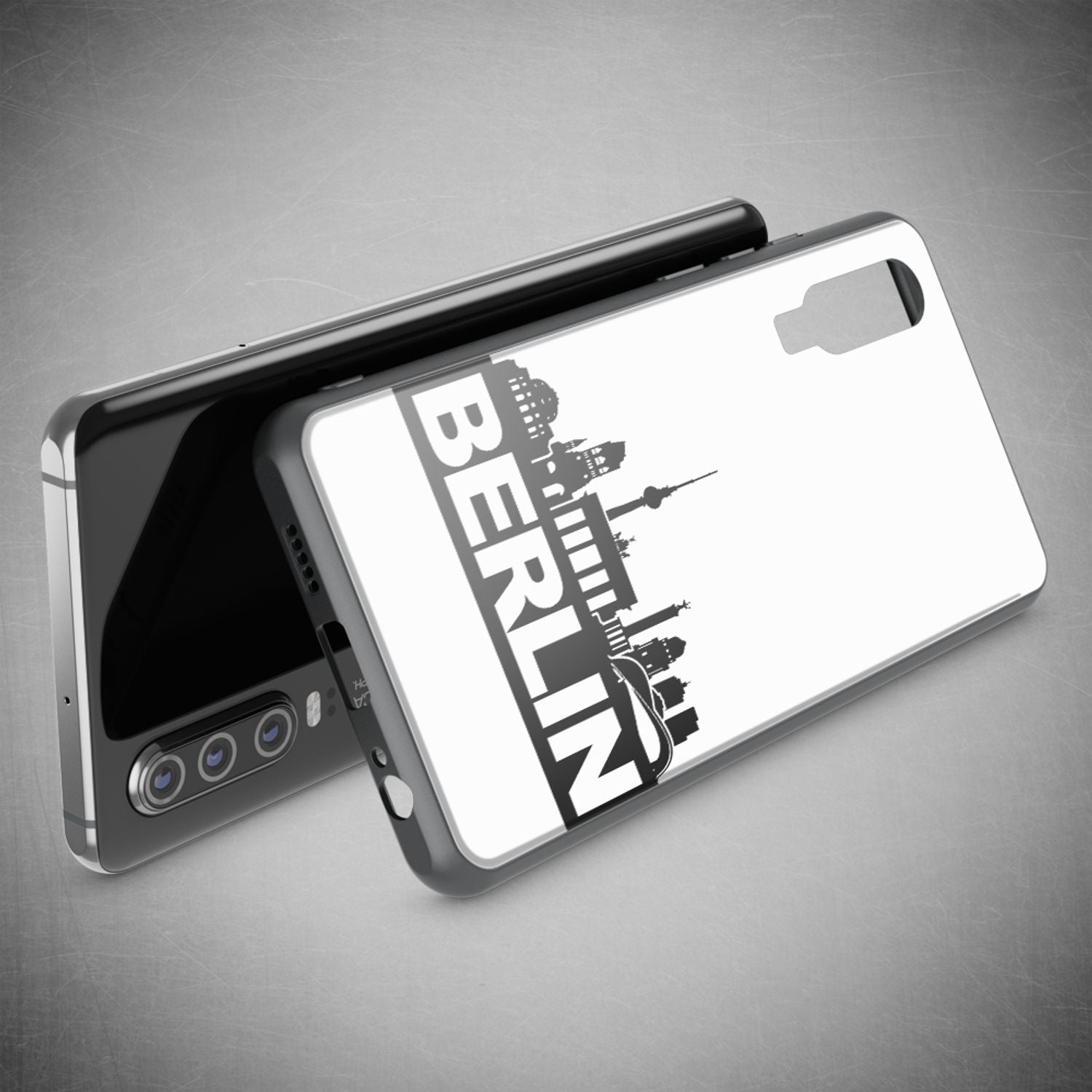 NALIA Hartglas Hülle kompatibel mit Huawei P30, Original Berlin Design Motiv Hardcase aus 9H Tempered Glass & Silikon Bumper, Kratzfeste Handyhülle Cover Case