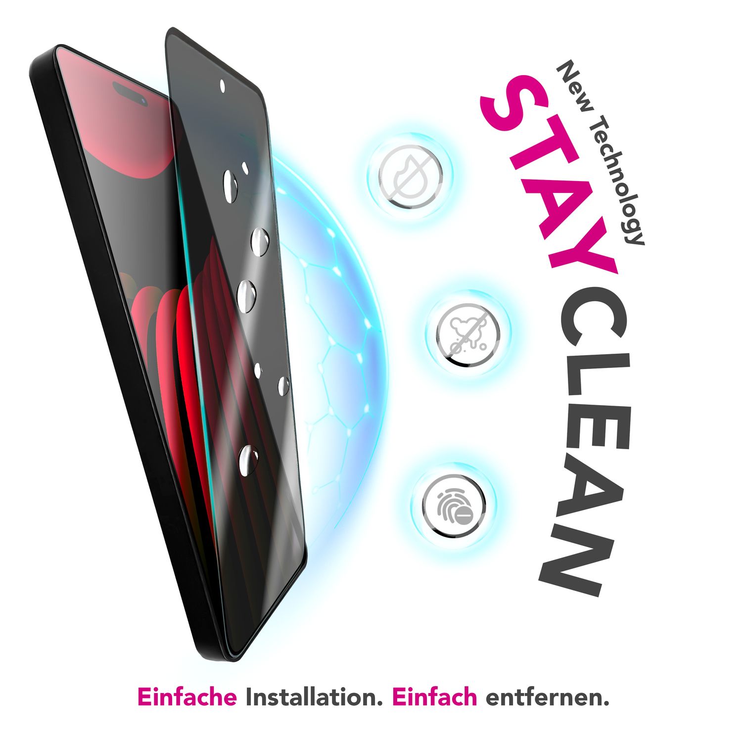 - Material: Gehärtetes Temperglas mit AntiSpy-Blickschutzschicht