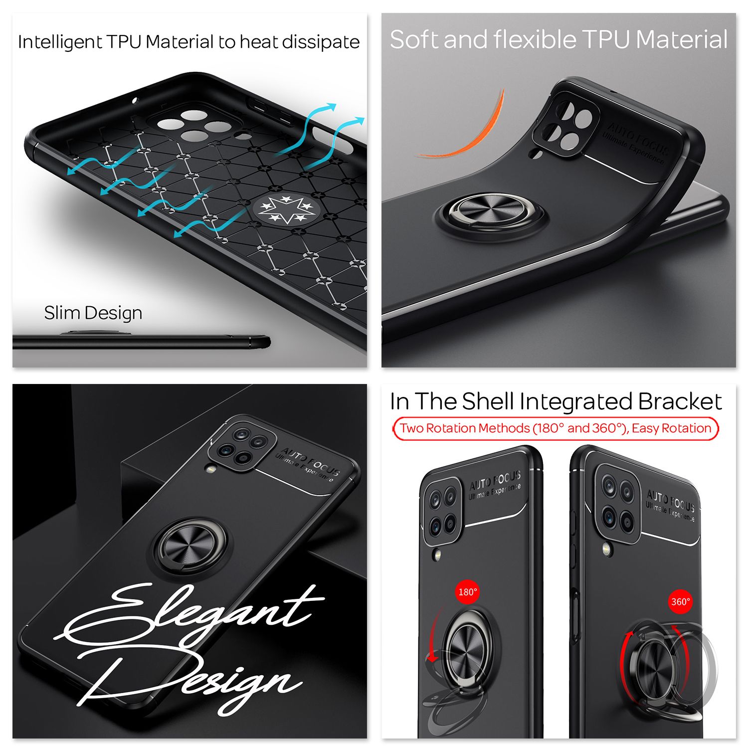 NALIA Ring Handy Hülle für Samsung Galaxy A12, Schutz Case Tasche Etui Bumper