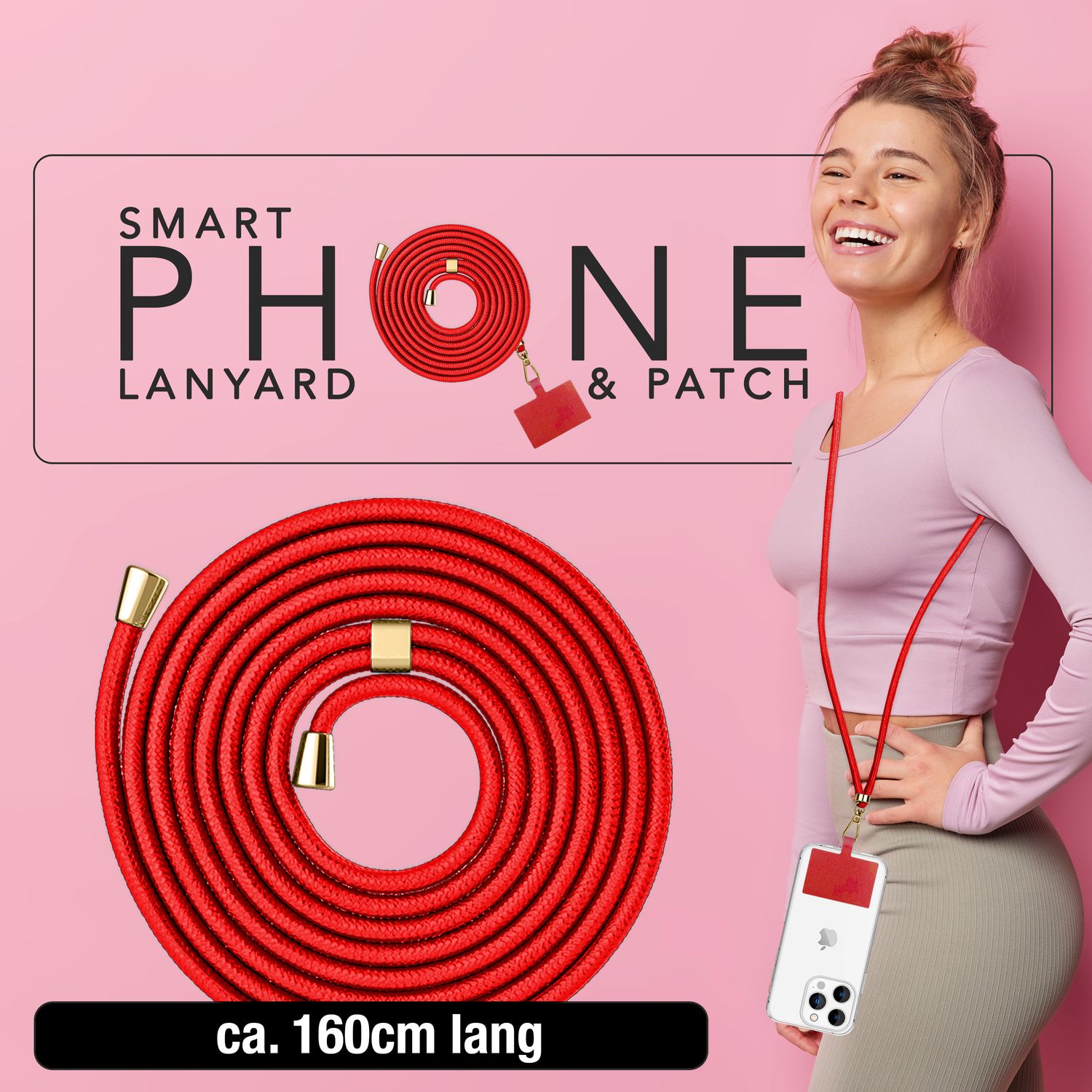 - Länge des Bands: 160 cm (Gesamtlänge, variabel tragbar)