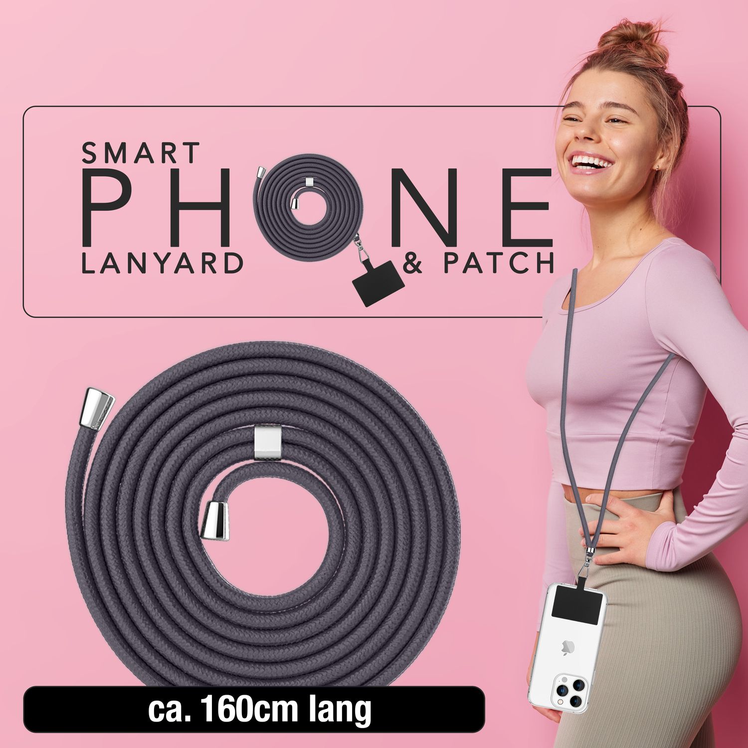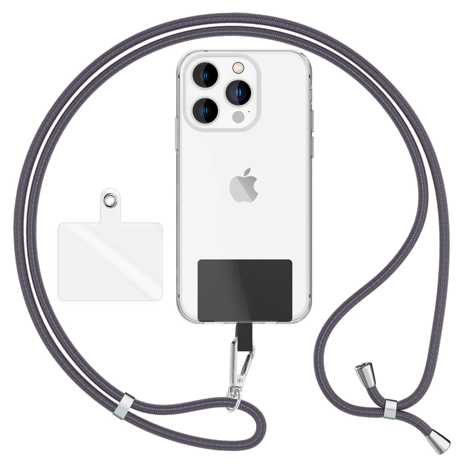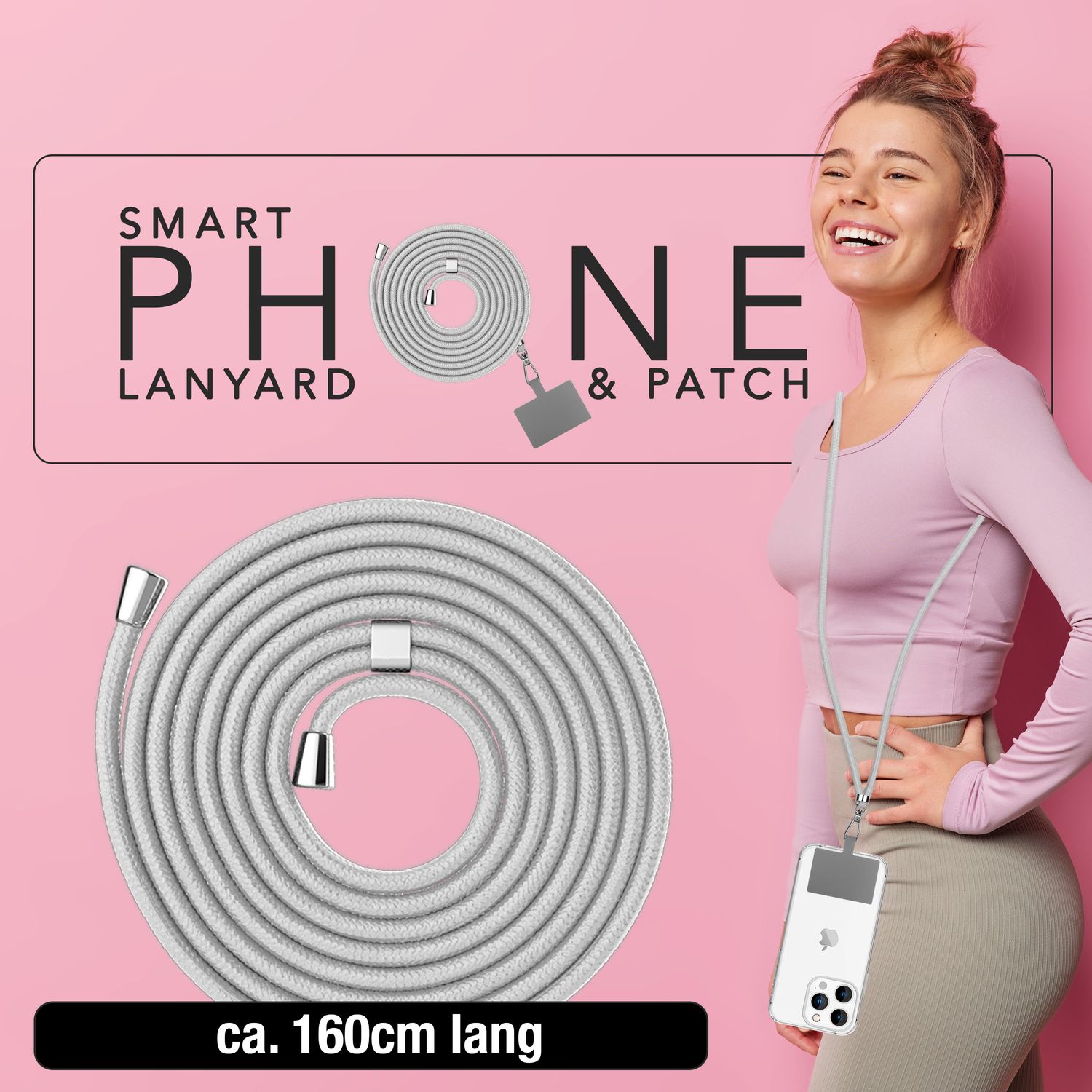 NALIA Universal-Kette mit Pad, Band für Handy-Hülle zum Umhängen, Karabinerhaken aus Metall (silber), Schlüsselband Umhängeband 160 CM, Crossbody Lanyard