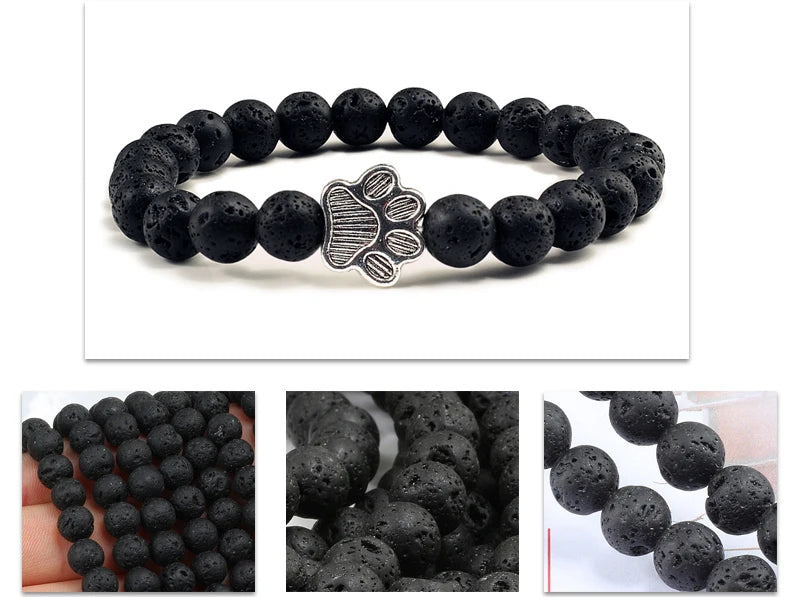 Reliatonny Natürlich Matt Schwarz Lava Vulkanstein Pfoten-Druck Armband – Dezenter Gedenk-Schmuck für Haustierliebhaber