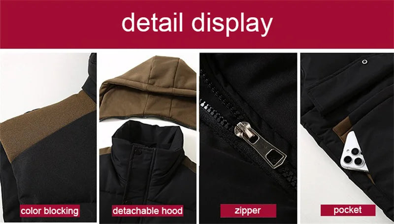 Diese Herren-Weste kombiniert wärmende Baumwollfüllung mit einer abnehmbaren Kapuze und einem klaren, lässigen Design – ideal für Alltag, Reisen und Outdoor-Aktivitäten bei kühleren Temperaturen.