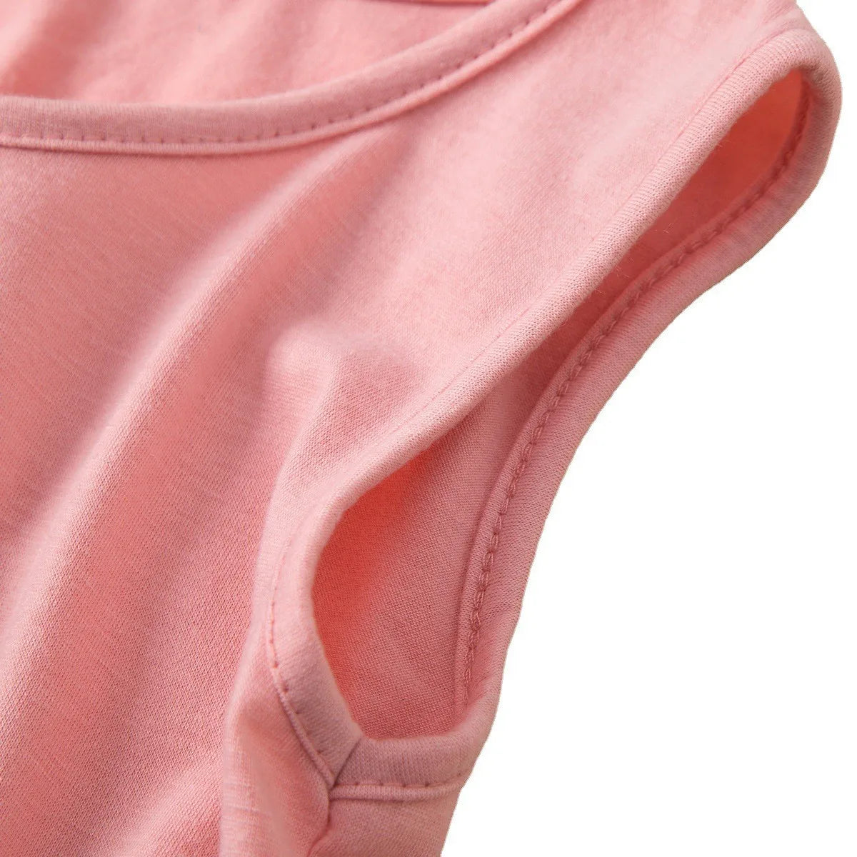 - Ärmelloser, luftiger Schnitt verhindert ein Einengen an den Schultern und erlaubt sorgloses Spielen und Alltagstätigkeiten.