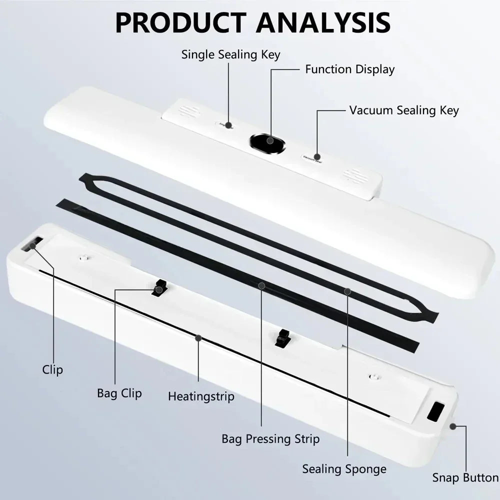 - Leistungsstarke Vakuumpumpe: Sorgt für eine verlässliche Luftentfernung aus den Beuteln und eine dichte Versiegelung.
