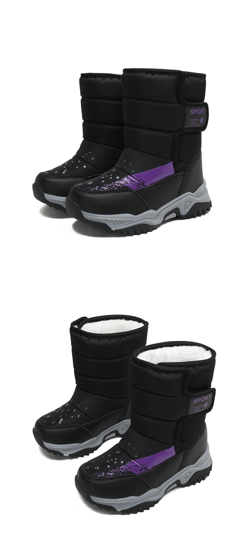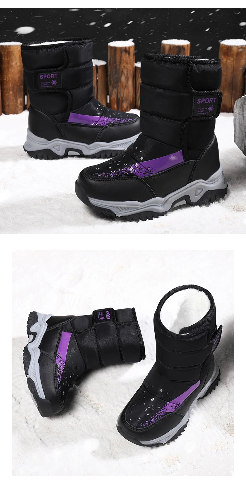 Kinder Winter Stiefel 2025 - Warme Leder Boots Jungen Mädchen - Rutschfest Gefüttert Pink Lila - Mode Winterschuhe