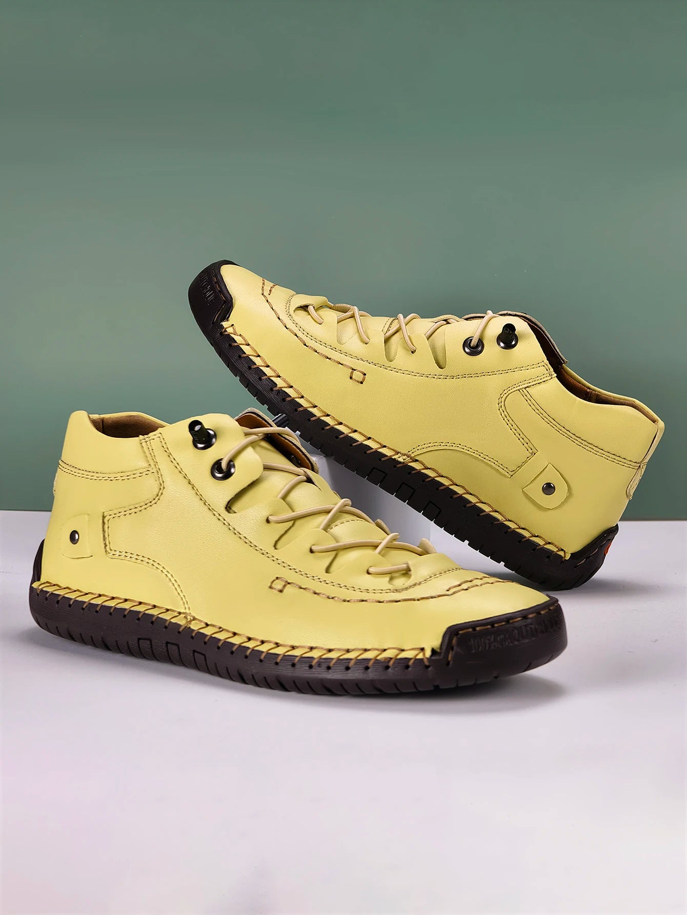 Diese handgenähten Leder-Sneakers kombinieren elegantes Design mit atmungsaktivem Tragekomfort und bieten zuverlässige Alltagstauglichkeit für unterwegs und Zuhause.