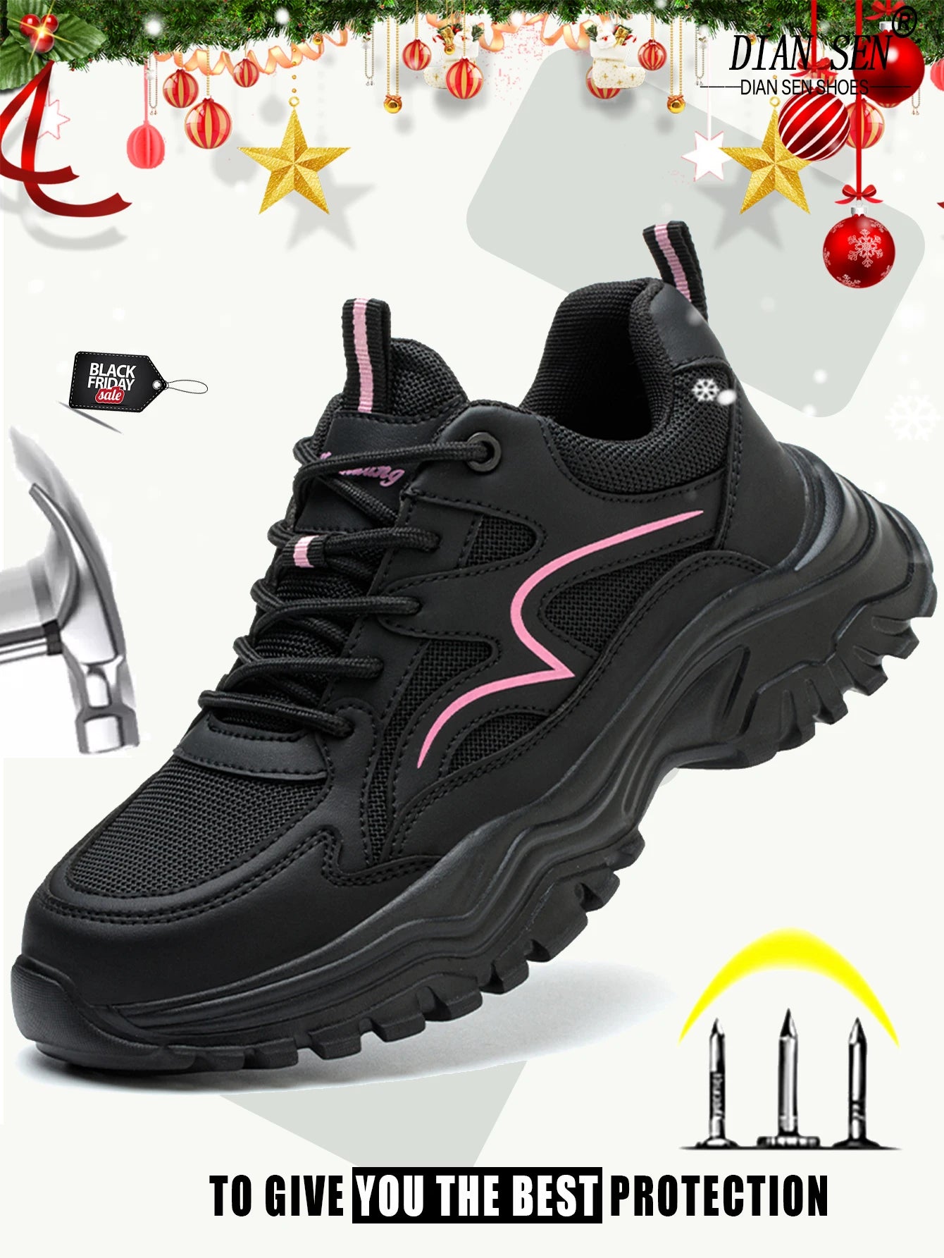 New Fashion Women Safety Shoes For Work Safety Boots Breathable Steel Toe Puncture Proof Sport Work Sneakers Slip-resistant