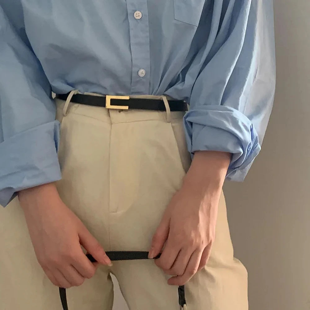 New Luxury Women Thin Belt Black Gold Silver Metal Buckle Belt PU Casual Leather Waist Belt Trouser Dress Decoration Waistband