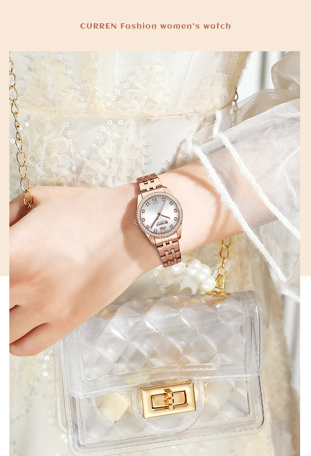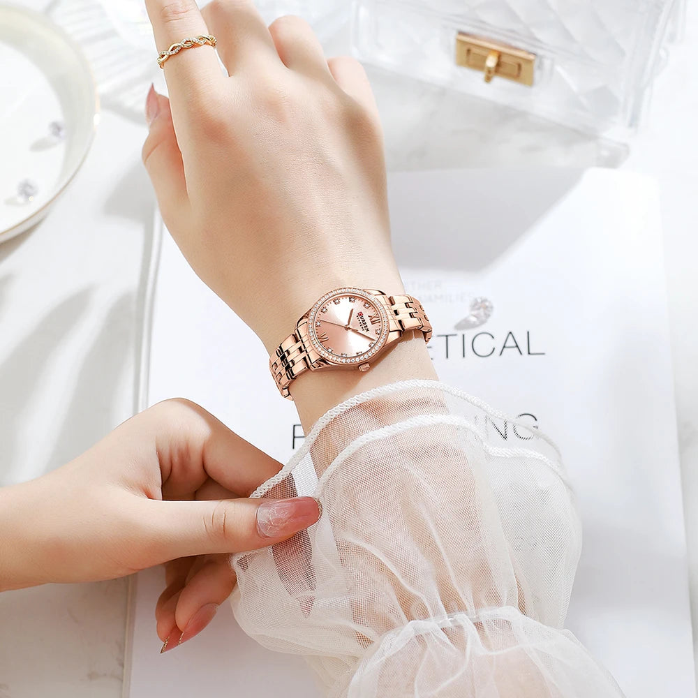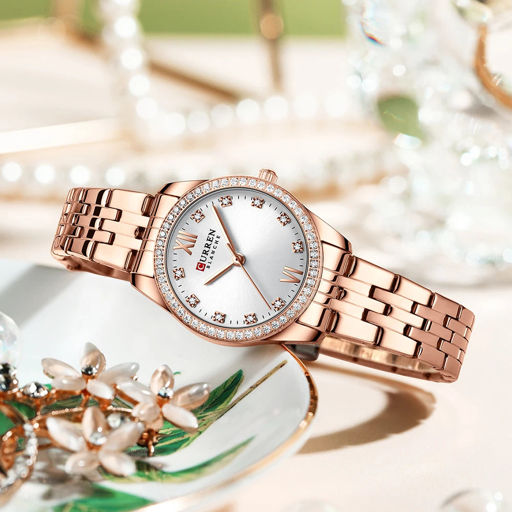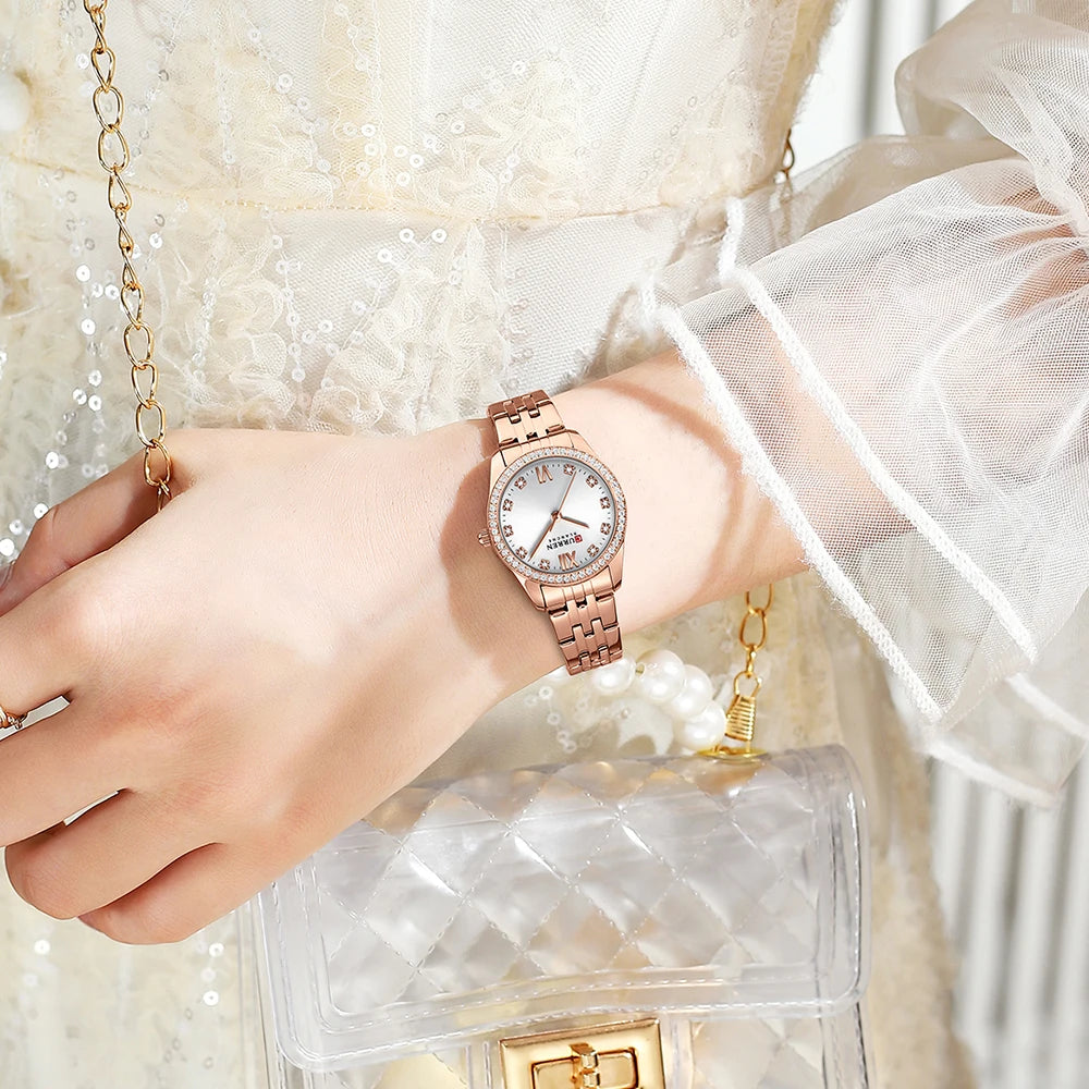 - Luxus-Damenarmbanduhr mit Stahlband und Kristallakzenten