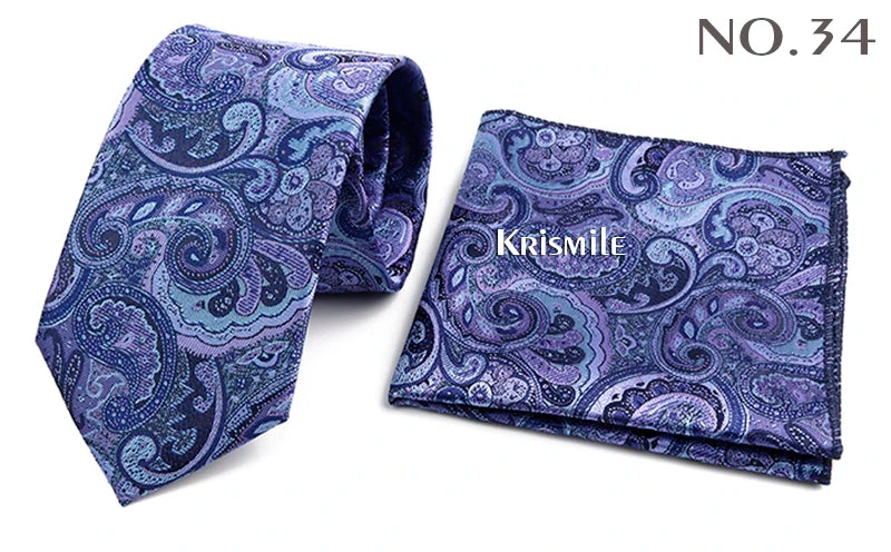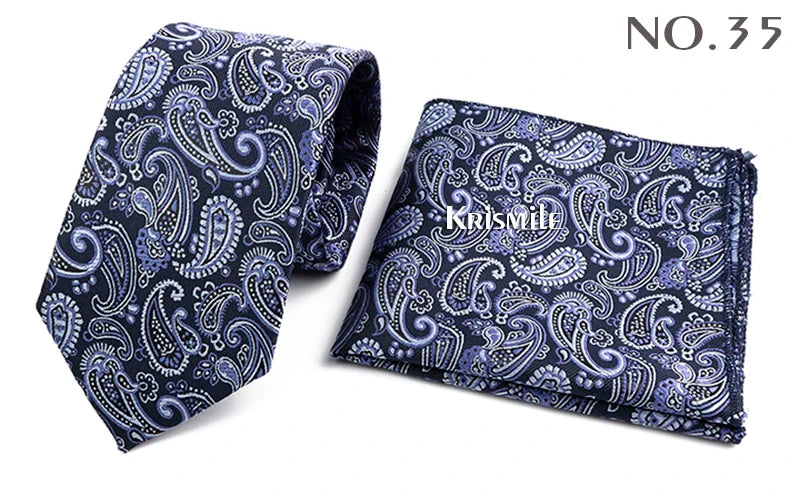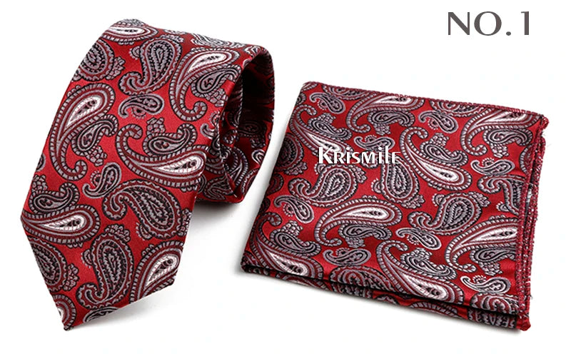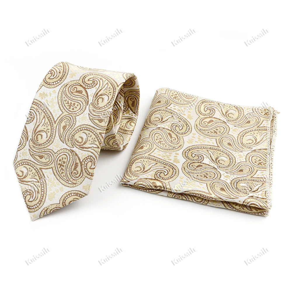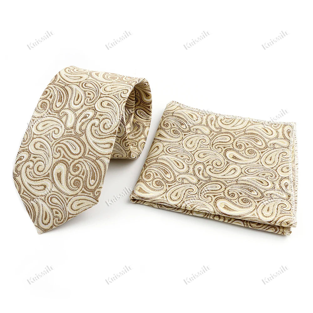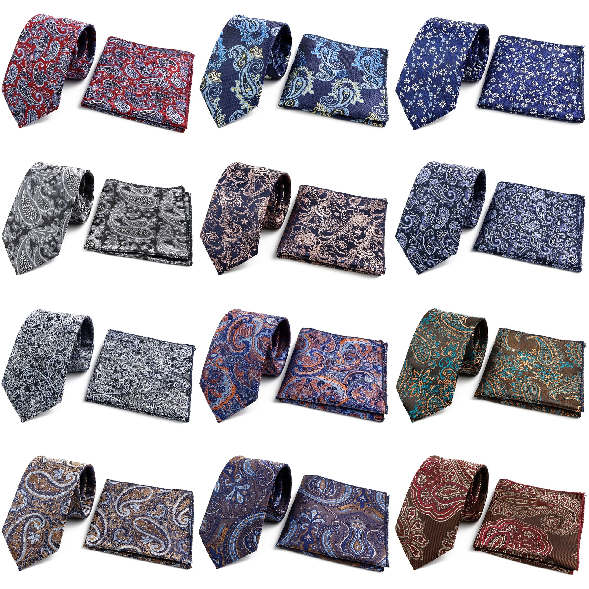 Novelty Paisley Tie Pocket Square Set For Men Skinny Slim 6cm Necktie Fit Business Wedding Party Stage Host Daily Wear Accessory