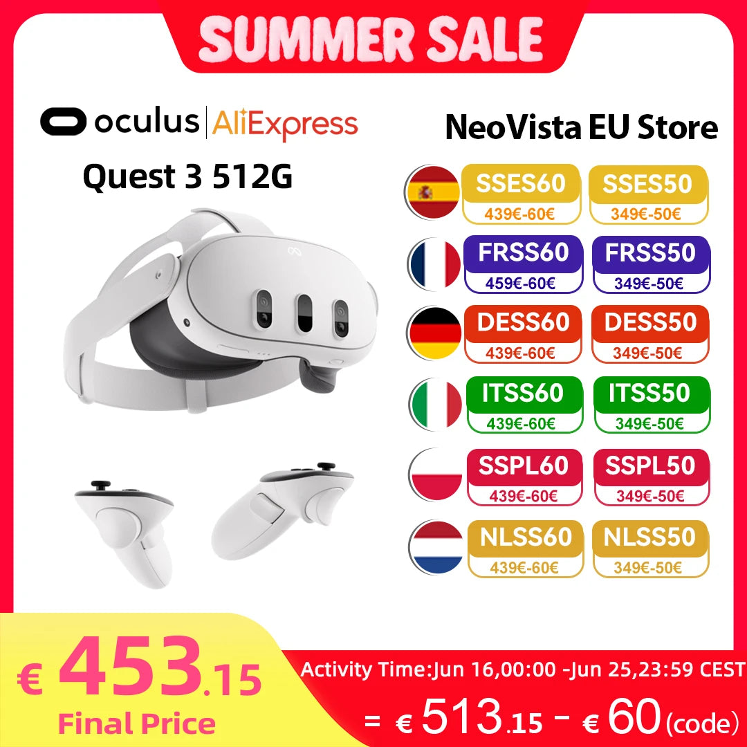 Oculus Quest 3 512G VR-All-in-One-Headset mit integriertem Kopf-VR-Headset-Bewegungssensor-Spielkonsole-Smart-Glasses-Quest-3