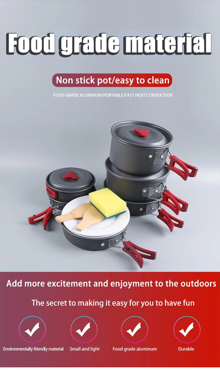 Outdoor Camping Kochset – Kompaktes, faltbares Kochgeschirr für effizientes Kochen unterwegs