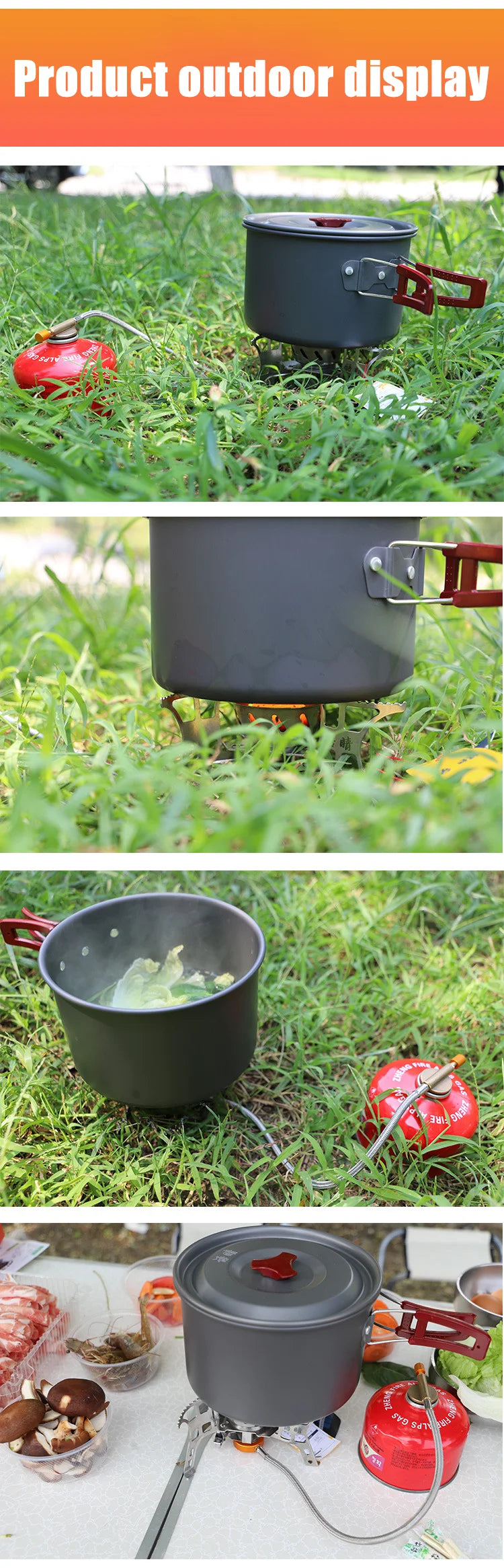 Ob schnelle Tasse Tee am Morgen, das Erhitzen von Wasser für Instantmahlzeiten oder das Zubereiten einer warmen Mahlzeit nach einem langen Tag in der Natur – dieses Set unterstützt Sie mit durchdachten Details und einer strapazierfähigen Ausführung. Die Kombination aus geringem Gewicht, einfacher Bedienung und effizienter Wärmeleitung macht dieses Kochset zu einem unverzichtbaren Begleiter für alle, die mobil und unabhängig unterwegs kochen möchten.