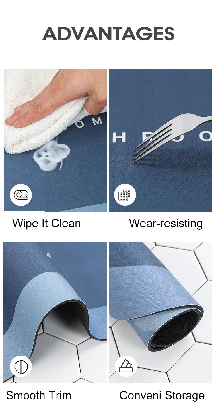 - Geeignet für Fliesen, Laminat oder Vinylböden – die Matte bleibt sicher an Ort und Stelle.