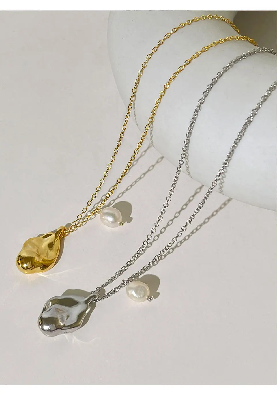 Peri'sbox Gold Silver Plated Baroque Pendant Necklace with Natural Freshwater Pearl Irregular Teardrop Necklaces Great Gift Idea