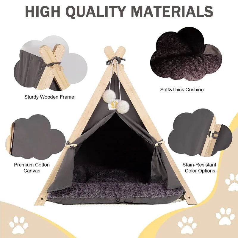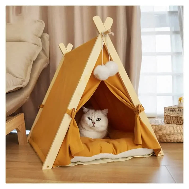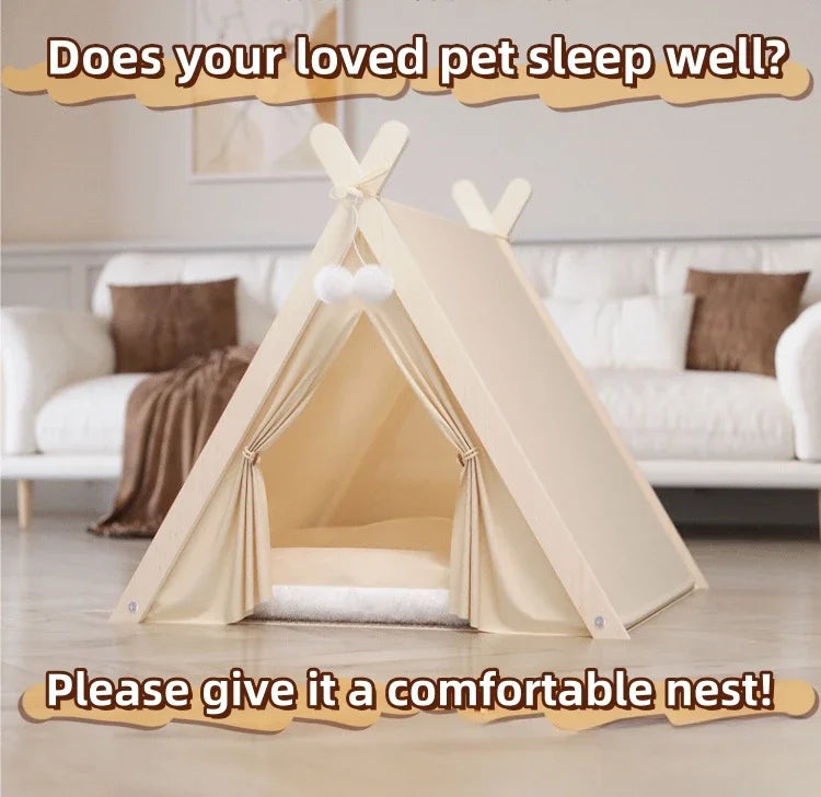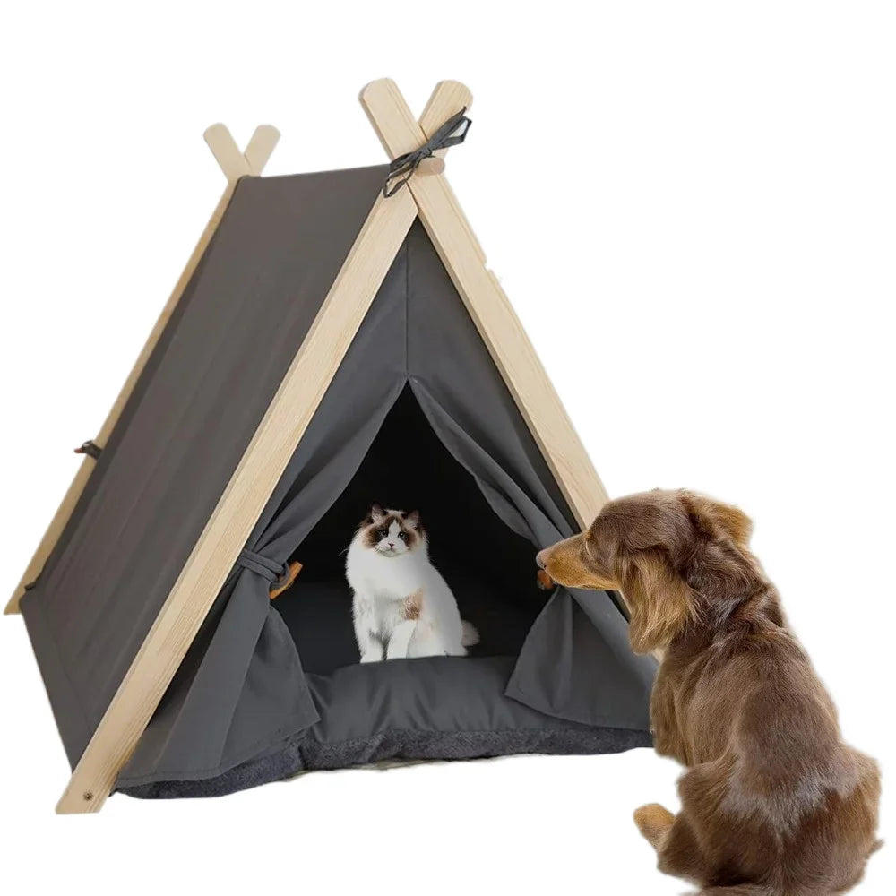 Pet Tent Nest Removable and Easy To Wash with Thick Soft and Comfortable Pad Warm Wooden Tent Bed Suitable for Cats and Dogs