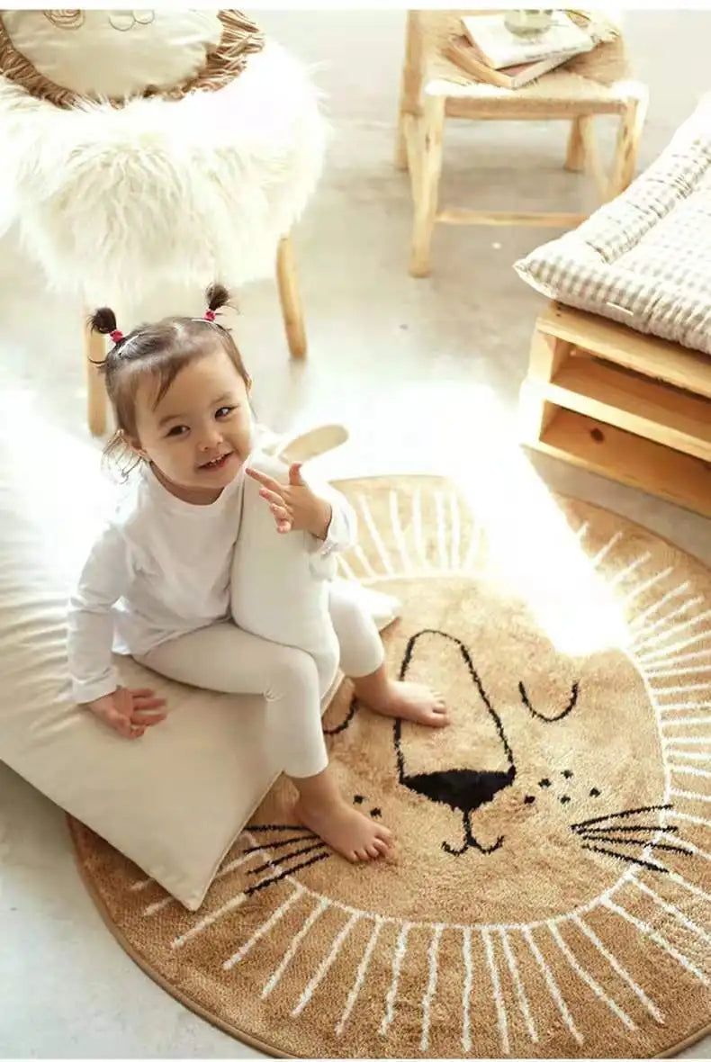 Photography Props Cartoon Round Shape Mat for Children Kid Play Pad Round Carpet Lion Playmat Living Room Carpet Rug for Bedroom
